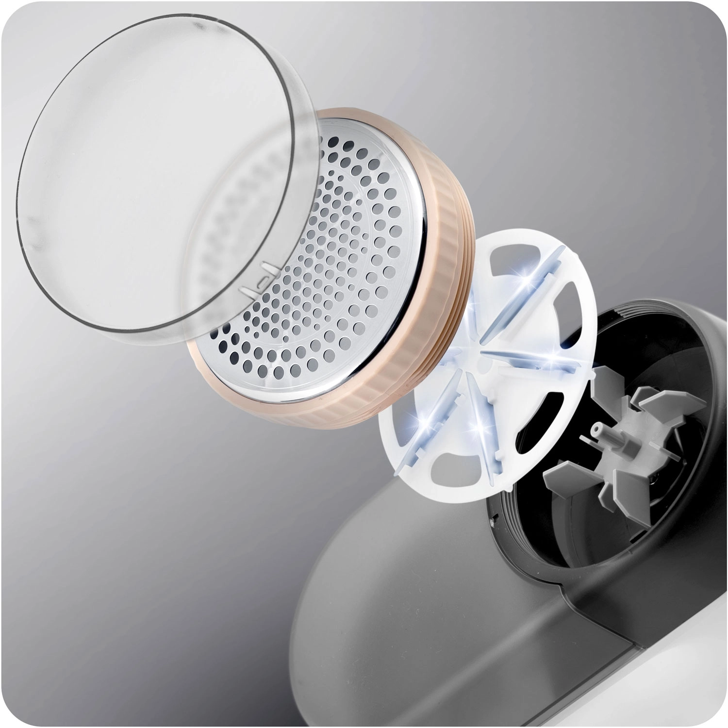 Izdržljive nehrđajuće oštrice učinkovito uklanjaju mucice i kuglice, dok profilirana zaštitna mrežica štiti vlakna od zapinjanja.