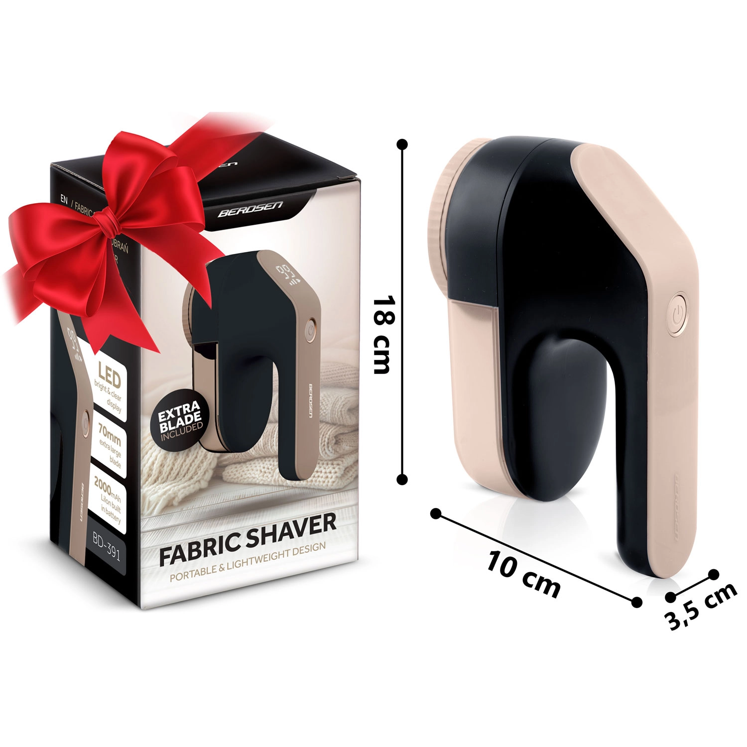 Održavajte svoju odjeću kao novu s kompaktnim odstranjivačem mucica BERDSEN s LCD zaslonom. Uređaj brzo i nježno uklanja mucice i kuglice s različitih tkanina, obnavlja glatku površinu i produljuje vijek trajanja odjeće i tekstila. Zahvaljujući trima razinama snage, dugom trajanju baterije i nehrđajućim oštricama, uporaba je brza, sigurna i učinkovita čak i na pletivima, kaputima, presvlakama i dekama.