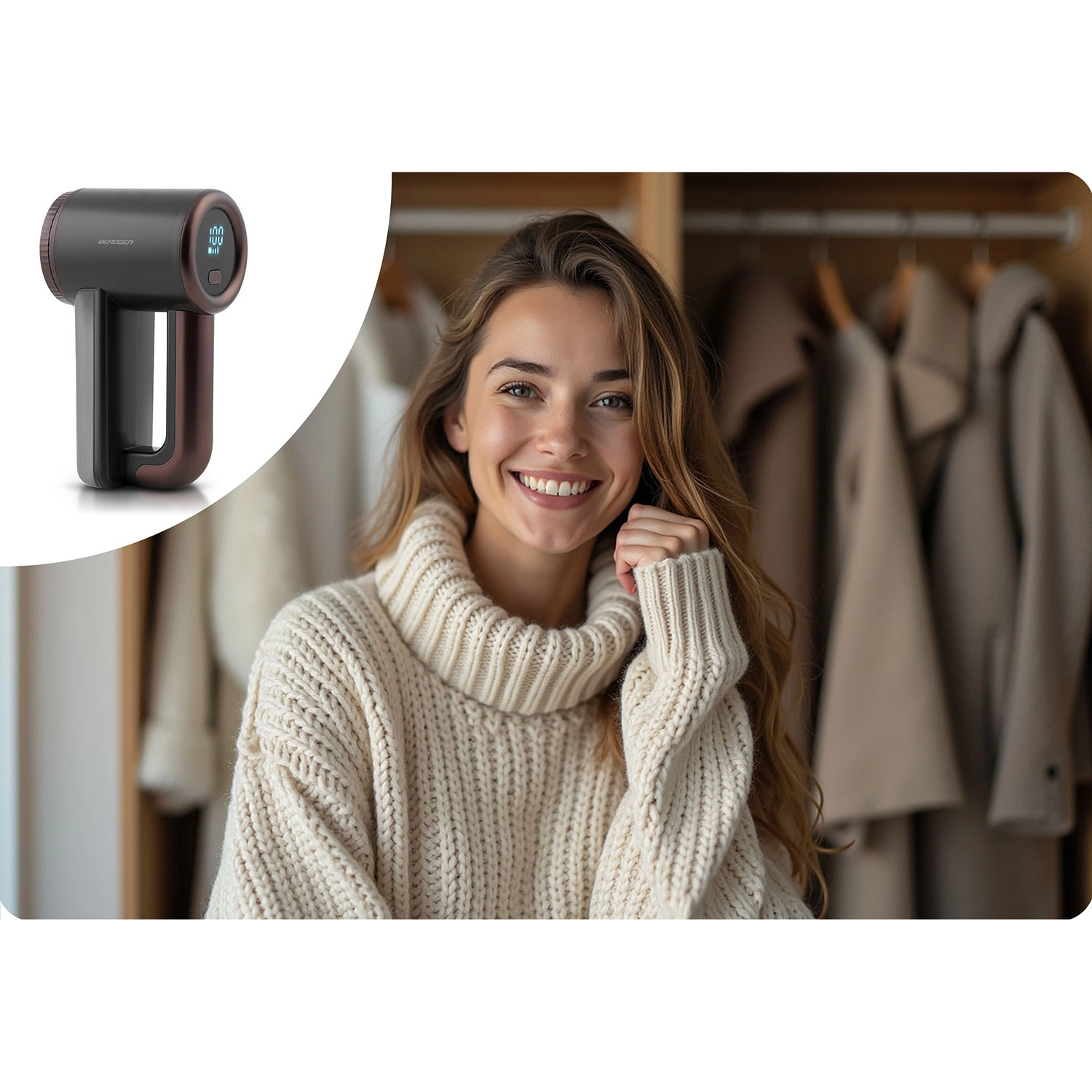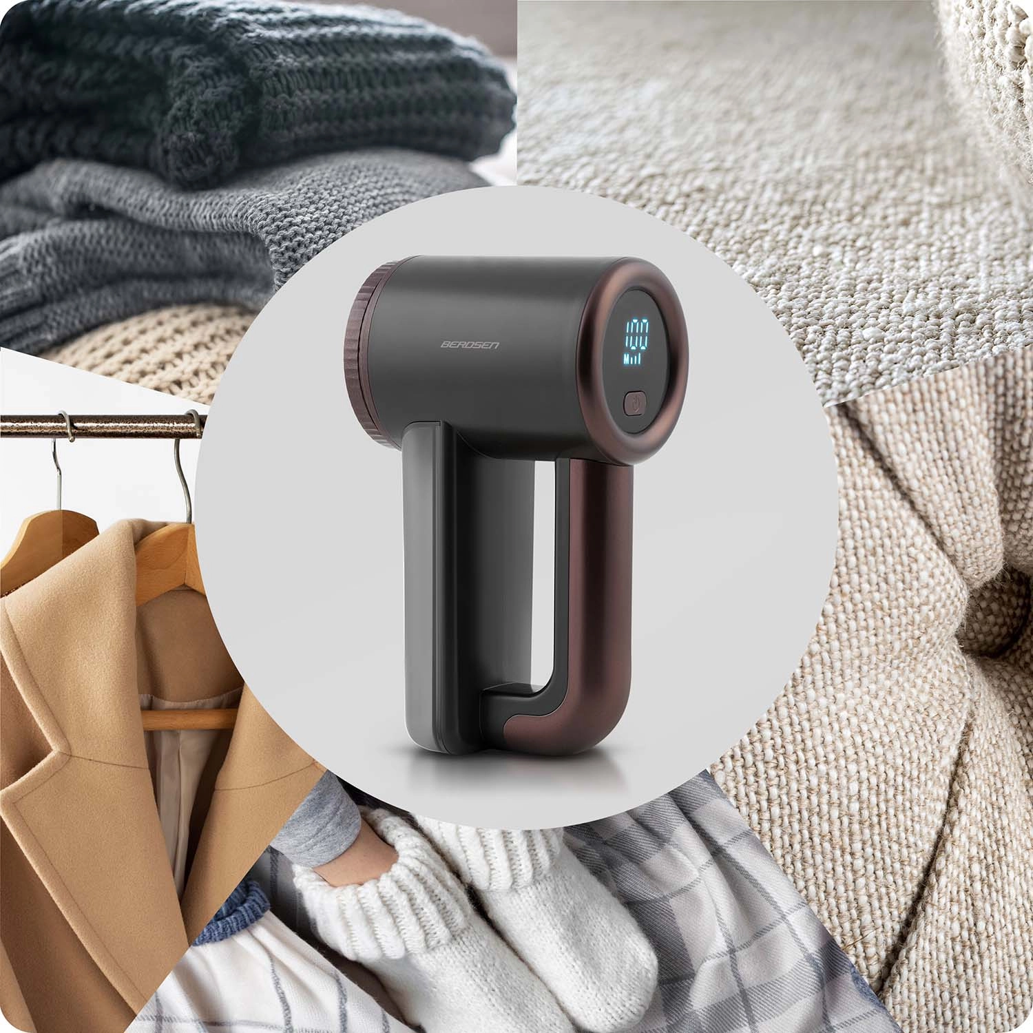 Vratite izgled svojim omiljenim komadima – odstranjivač mucica BERDSEN nježno i učinkovito uklanja mucice s pletiva, kaputa, košulja, ali i s deka, tepiha i presvlaka. Ergonomski oblik i pregledan LCD zaslon osiguravaju udobno korištenje kod kuće i na putu.