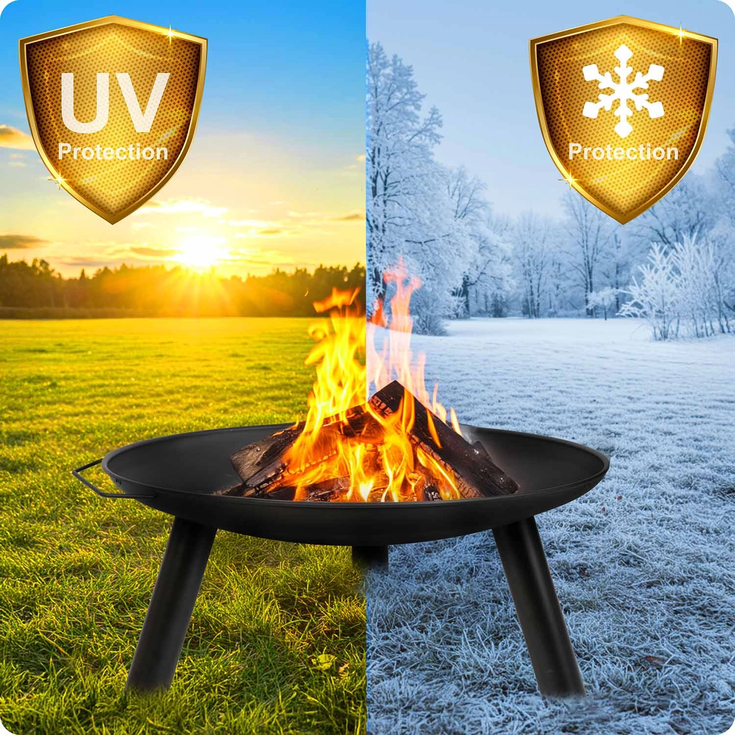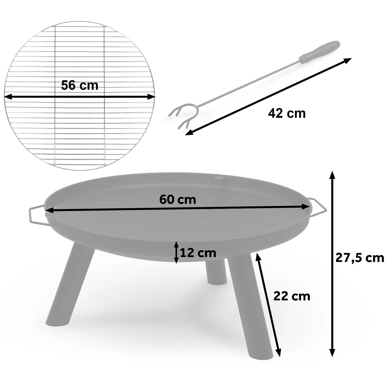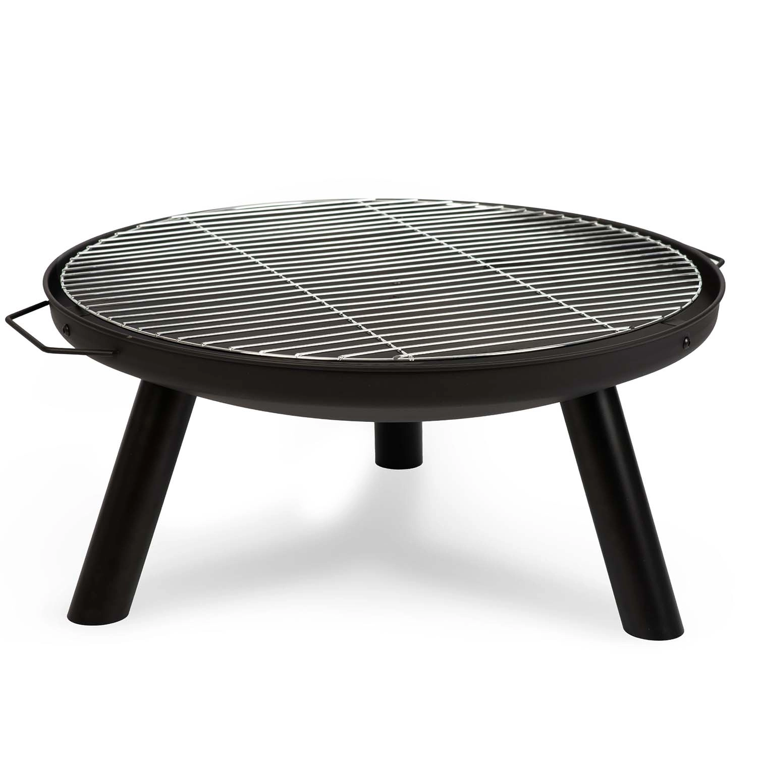 Tri robusne noge i plitka, široka čelična zdjela osiguravaju stabilnost i učinkovito zračenje topline. Bočne ručke olakšavaju premještanje po vrtu.
