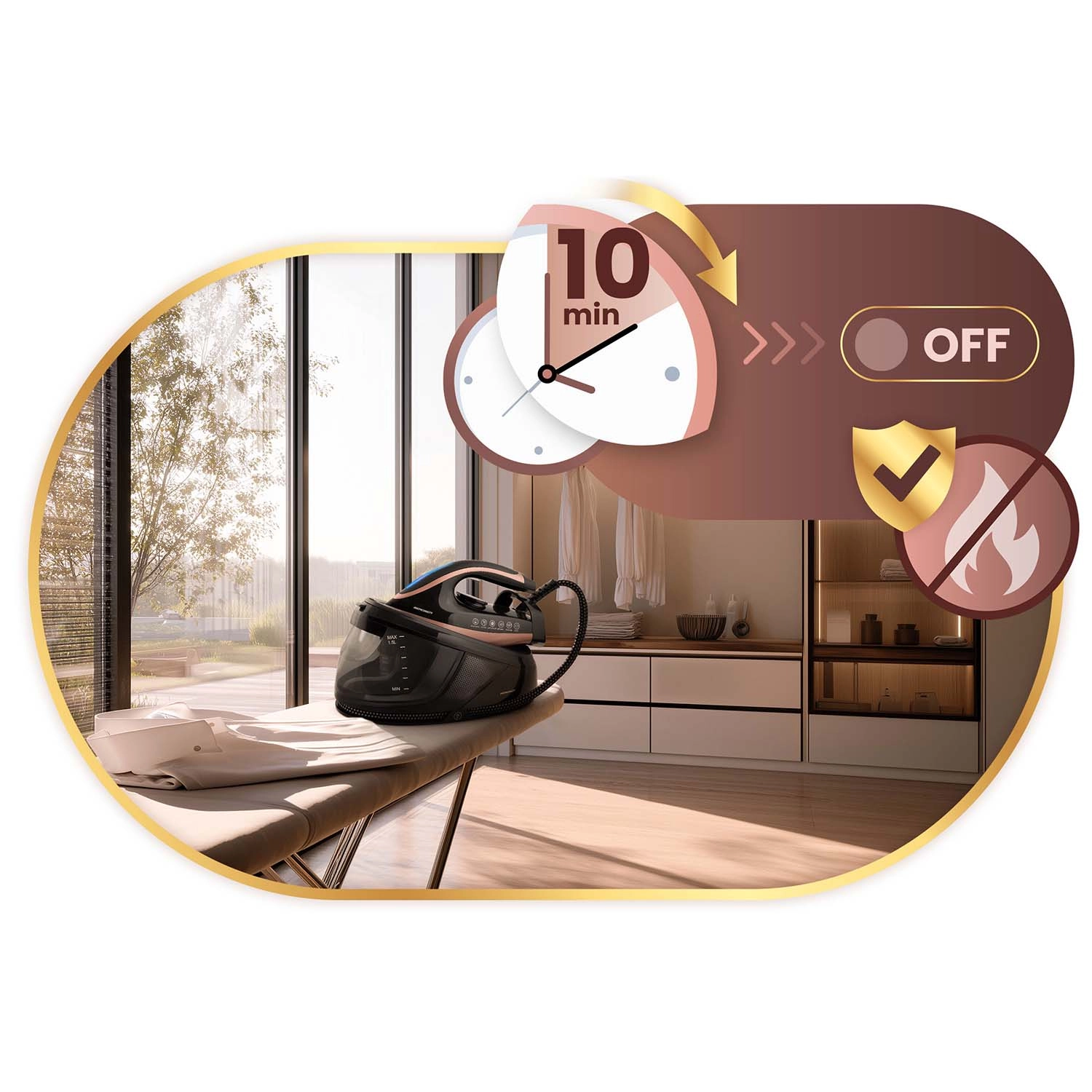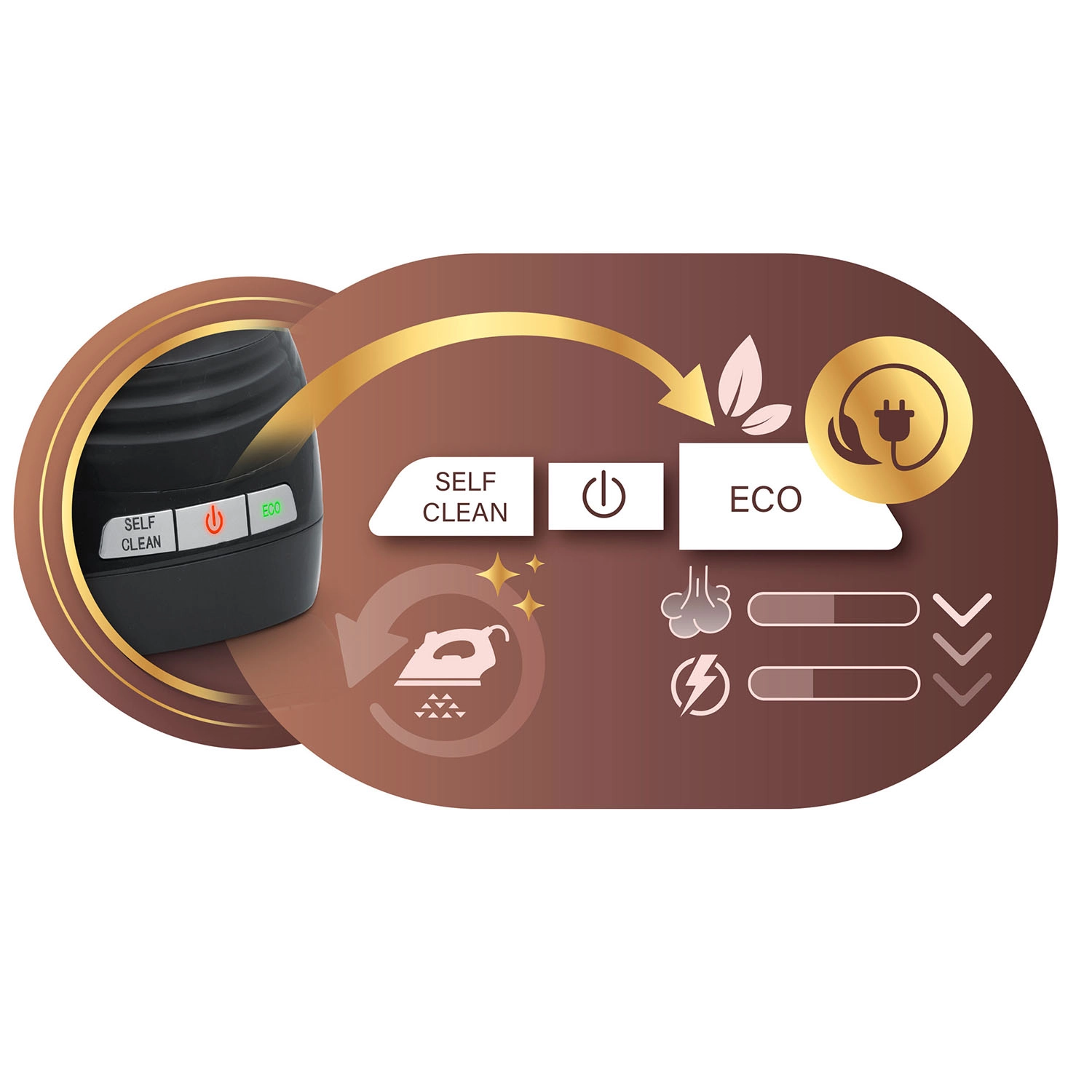 Uživajte u kontinuiranoj regulaciji temperature i regulaciji pare, načinu neprekidne pare za velike količine rublja te funkciji vertikalnog parenja za brzo osvježenje odjeće. Automatsko isključivanje Smart&Safe nakon 10 minuta povećava sigurnost, Self Clean produljuje vijek trajanja, a ECO način smanjuje potrošnju energije bez kompromisa u rezultatu.