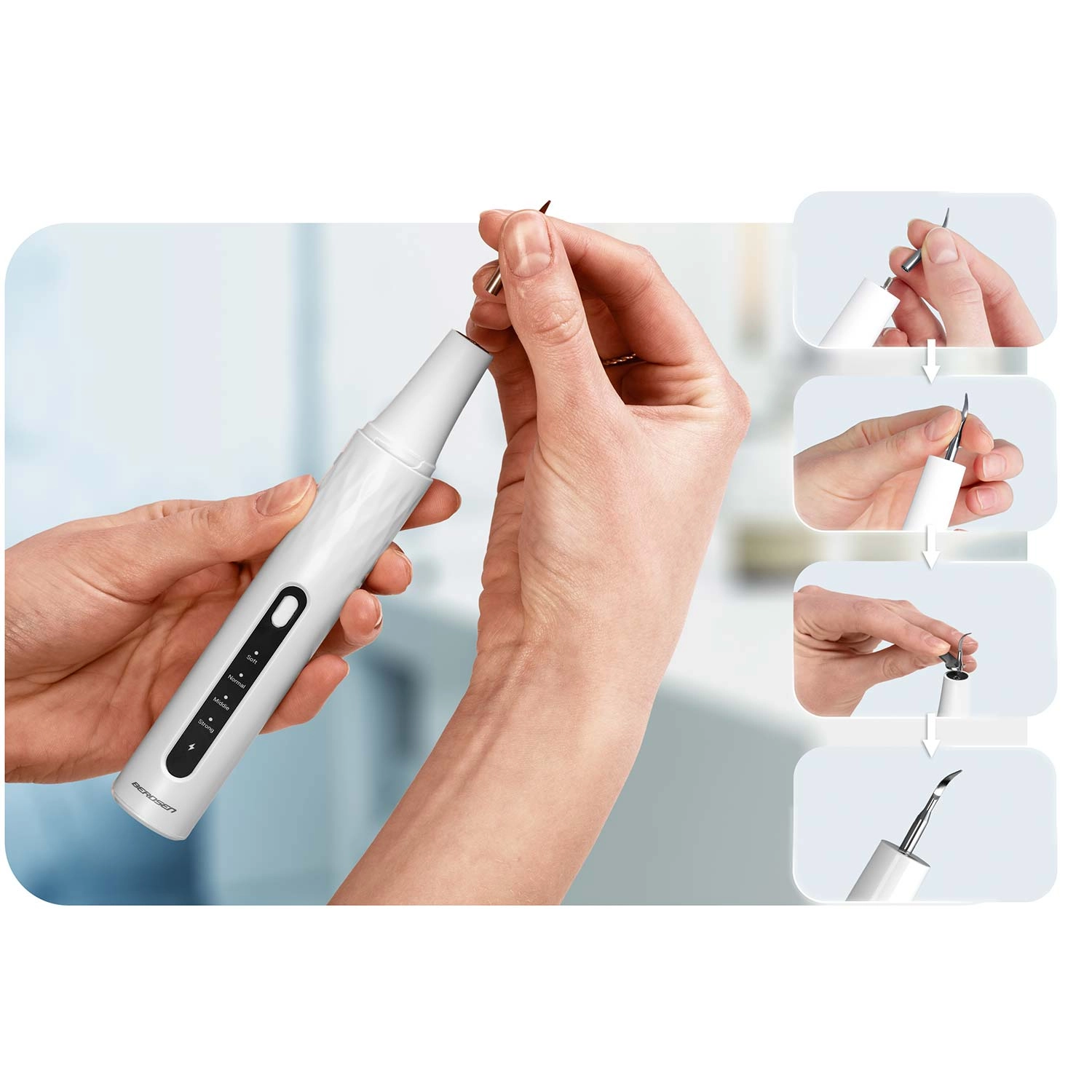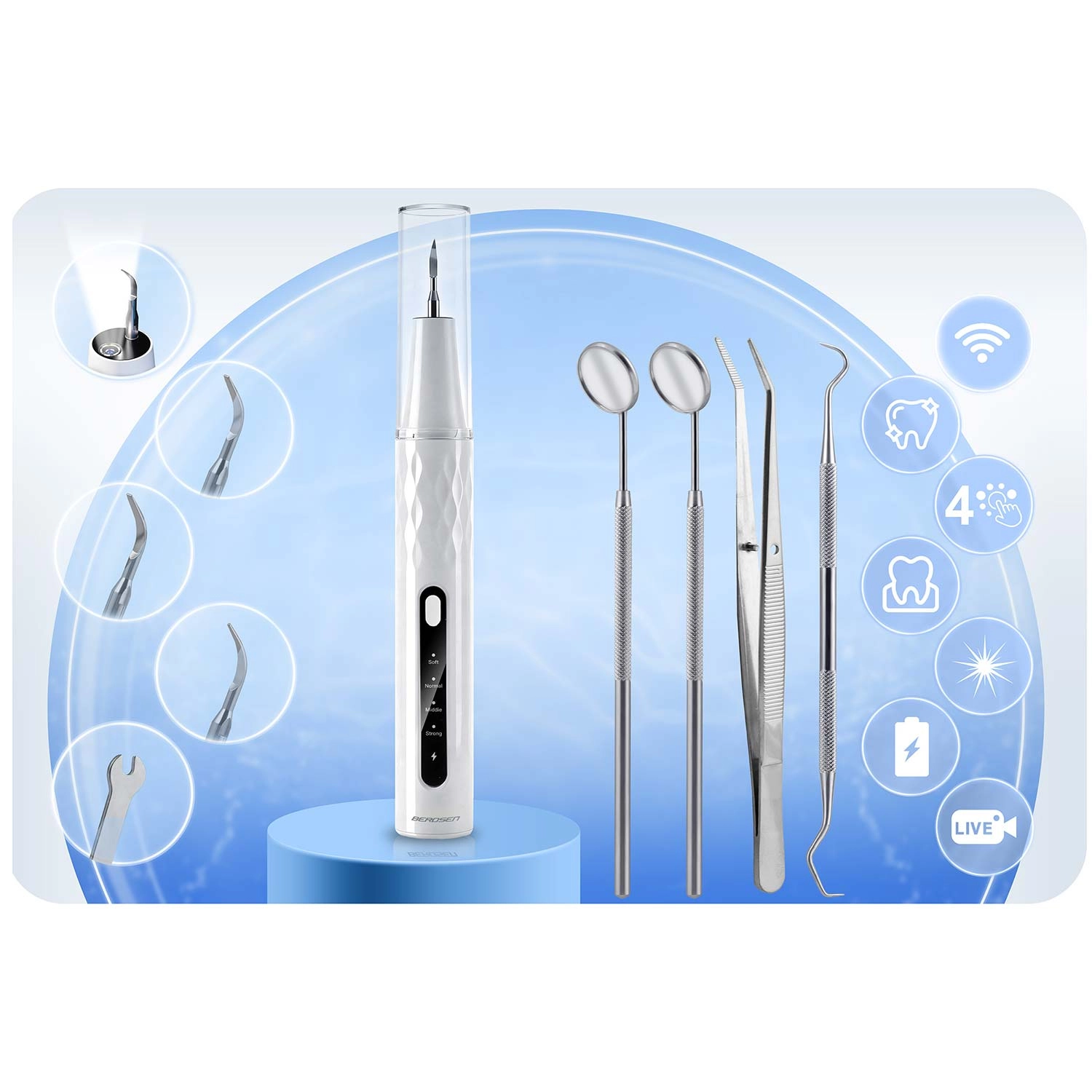 Kućna njega zubi na profesionalnoj razini. Ultrazvučni skaler BERDSEN s integriranom kamerom 2 Mpx i LED osvjetljenjem omogućuje vam precizan uvid u mjesta s zubnim kamencem i naslagama. Nudi 4 radna načina (35–45 kHz) za sve razine osjetljivosti, automatsko zaustavljanje pri dodiru s mekim tkivom, IPX7 vodootpornost, dugo trajanje baterije s punjenjem putem USB‑C te bogatu opremu uključujući 4 zamjenjive glave i set dentalnih alata od nehrđajućeg čelika. Idealno za sigurno i učinkovito čišćenje u udobnosti doma.