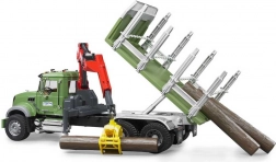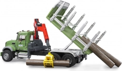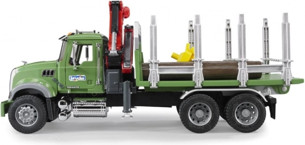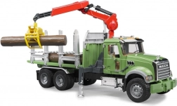 Robustan model kamiona BRUDER MACK GRANITE idealan je za realistično igranje sječe i prijevoza drva. Prozirno vjetrobransko staklo od nelomljivog polikarbonata, otvoriva kabina i poklopac motora s pogledom na motor daju modelu autentičan izgled. Stabilnost pri utovaru osiguravaju izvlačni podupirači, a rotirajuća dizalica s hvataljkom lako se upravlja.