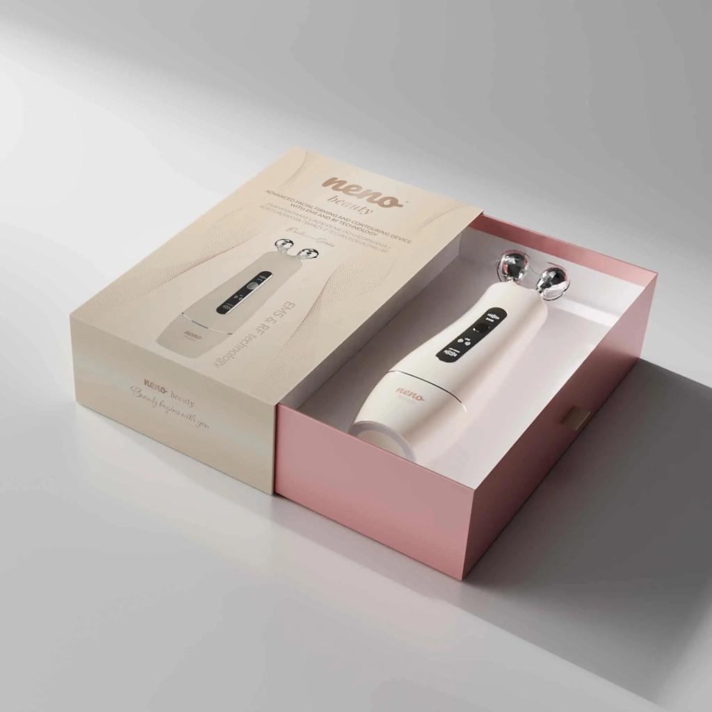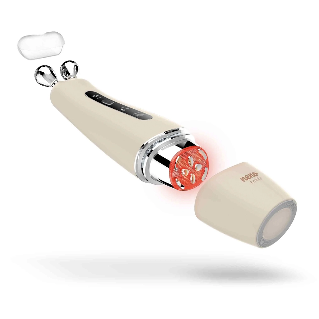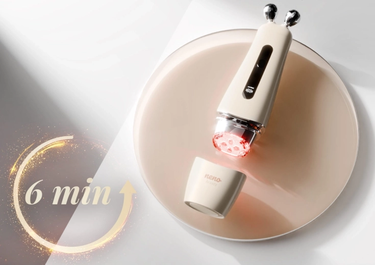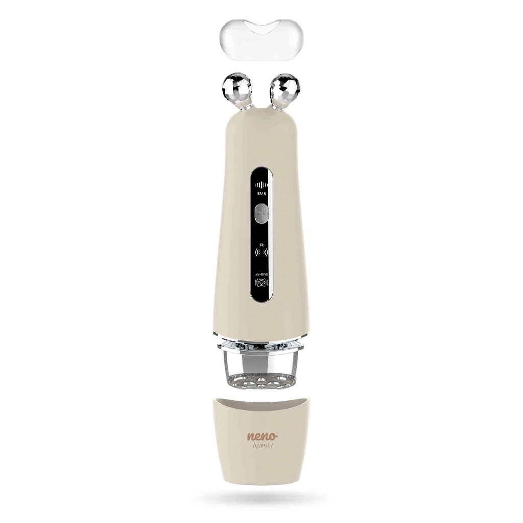 Neno Beauty Algo je multifunkcionalni kozmetički uređaj za kućnu uporabu koji pomaže definirati konture, potaknuti stvaranje kolagena i poboljšati elastičnost kože. Kombinira napredne tehnologije EMS i RF s LED terapijom i soničnim vibracijama kako bi pružio ciljan, ali nježan tretman. Zahvaljujući dvjema izmjenjivim glavicama – dijamantnoj i ravnoj s osam masažnih točaka – njegu lako prilagodite tipu i trenutačnim potrebama kože.