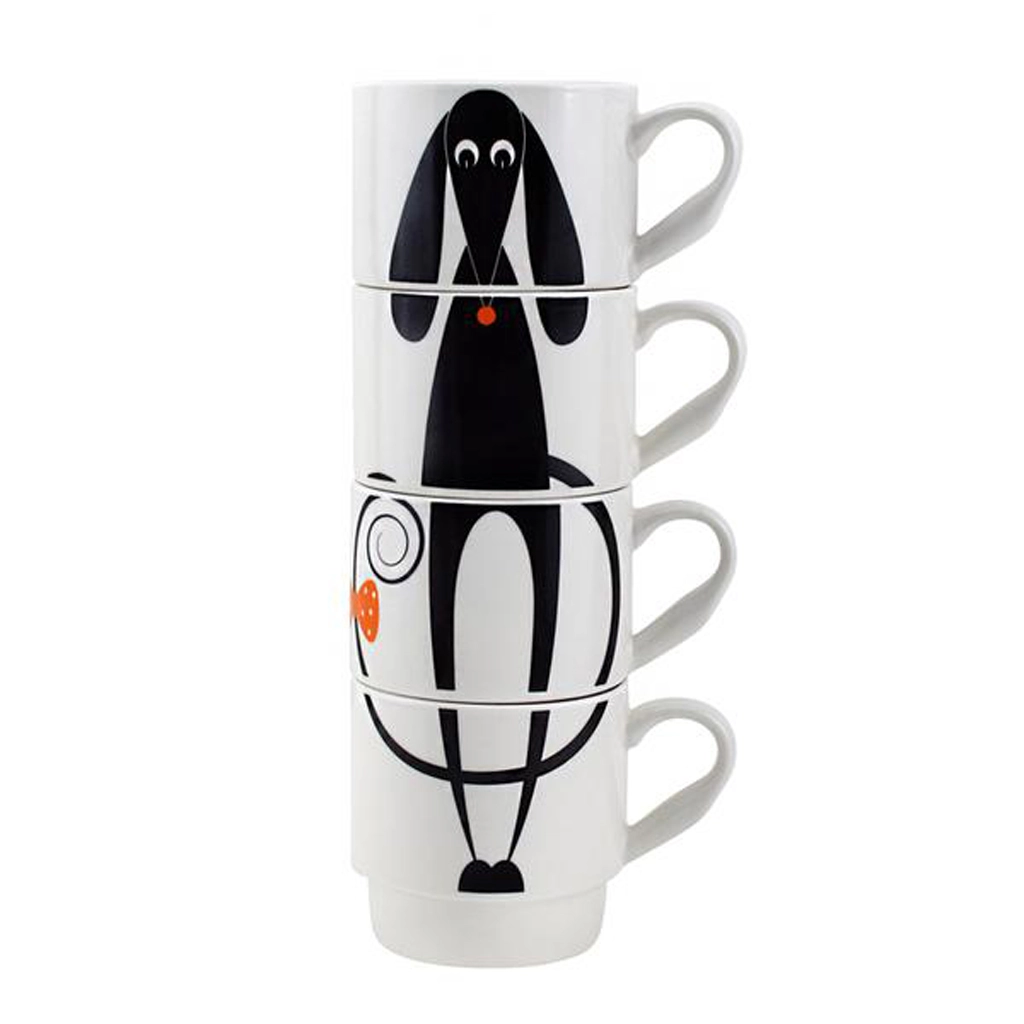 Keramičke slagive šalice s psićem 340 ml TORO, set 4 kom