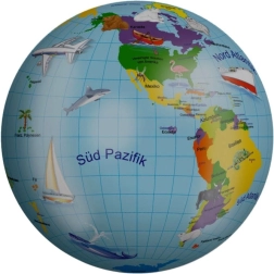 Praktična mogućnost dopumpavanja osigurava da ćete loptu lako održavati na ispravnoj tvrdoći. Dovoljna je obična pumpa za bicikl ili kompresor (nisu dio pakiranja). Atraktivan motiv globusa dodatno potiče znatiželju i čini loptu omiljenim partnerom za igre na otvorenom i u vodi.