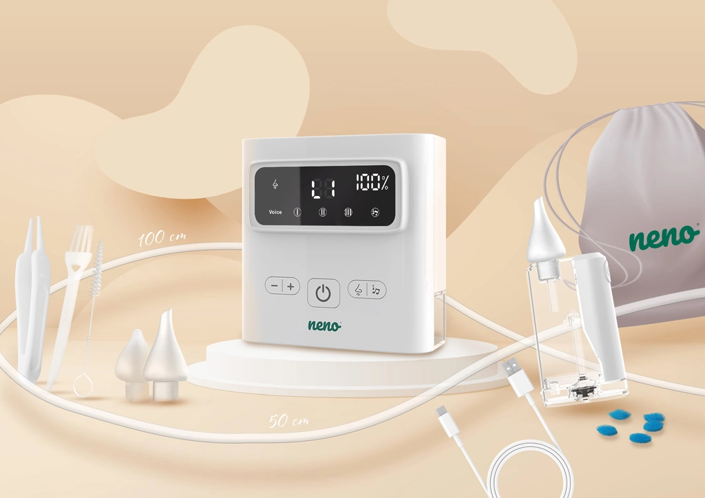 Sastavni dio su tri ergonomska silikonska nastavka dizajnirana prema razvoju dječjeg nosa. Za mirno čišćenje poslužit će dva glazbena zapisa i bijeli šum, dok će LED osvjetljenje poboljšati vidljivost pri njezi u mraku. Praktična samostalna posudica za sekret, lako perivi dijelovi i priložene četkice znatno pojednostavnjuju higijenu.