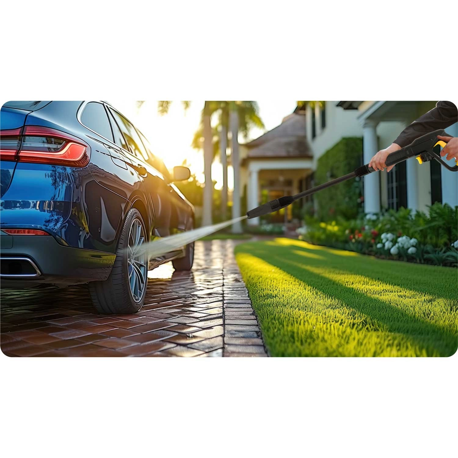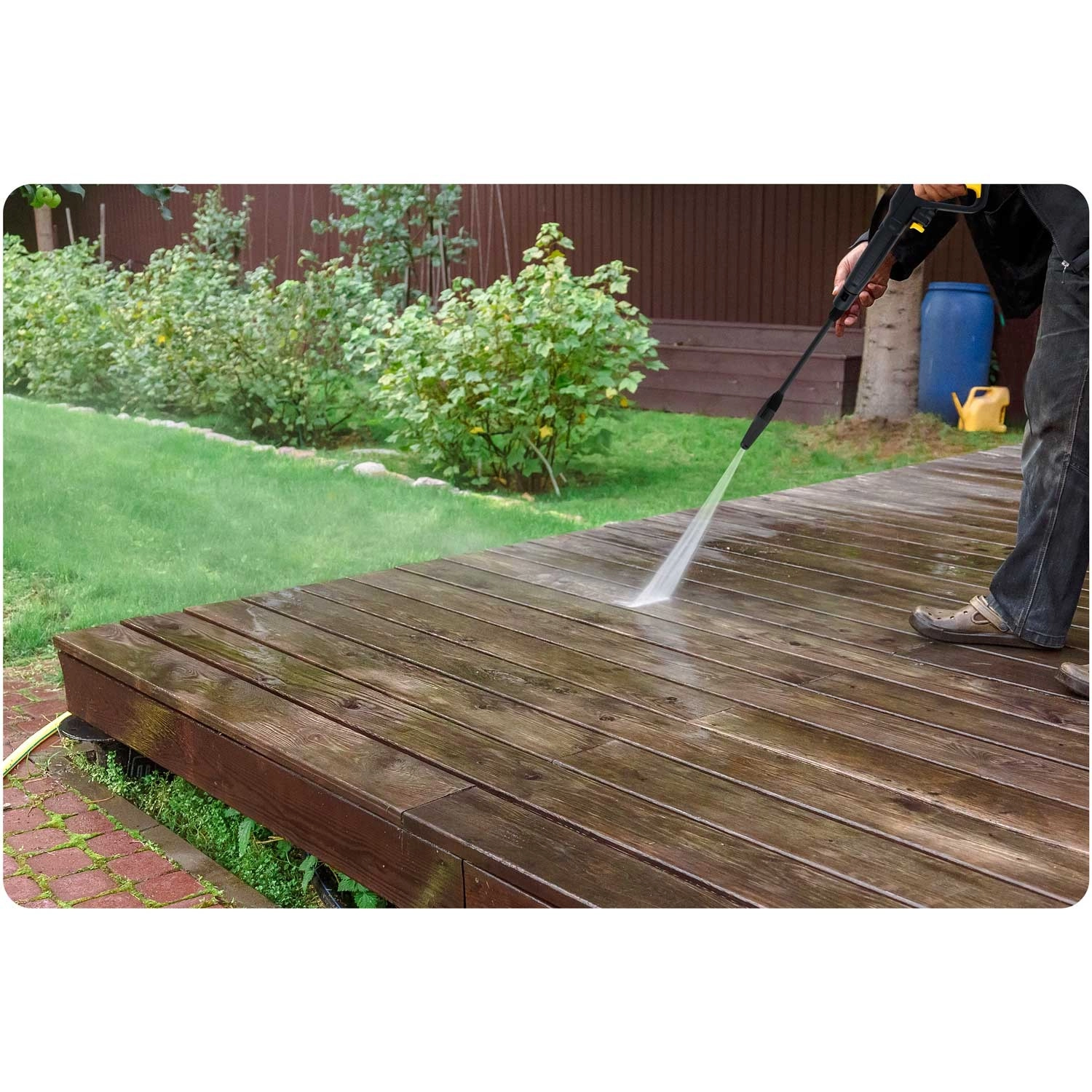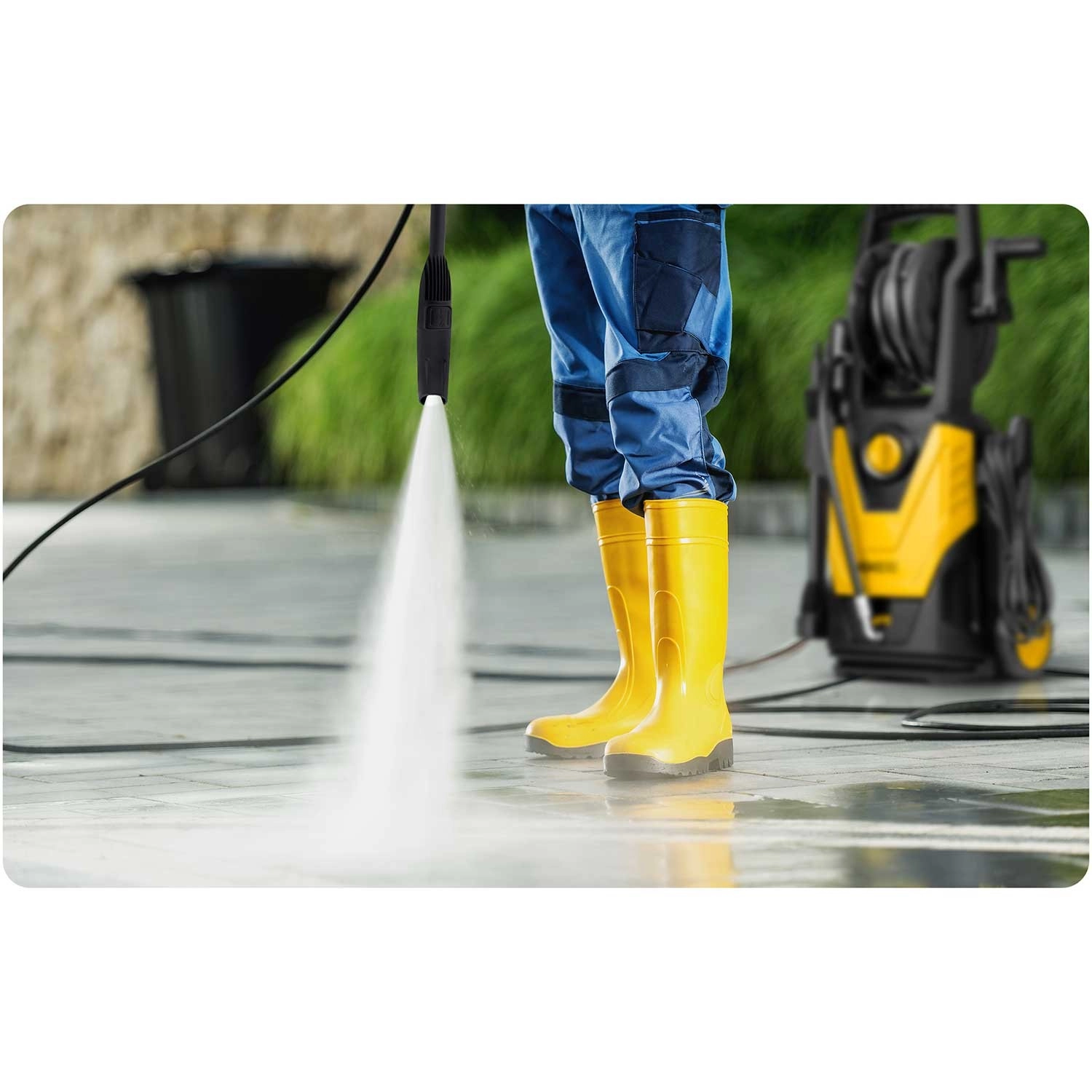 Koncentrirani visokotlačni mlaz brzo razgrađuje masnoću, blato i mahovinu na opločenju. Idealno za zahtjevno čišćenje terasa, staza i podvozja vozila.