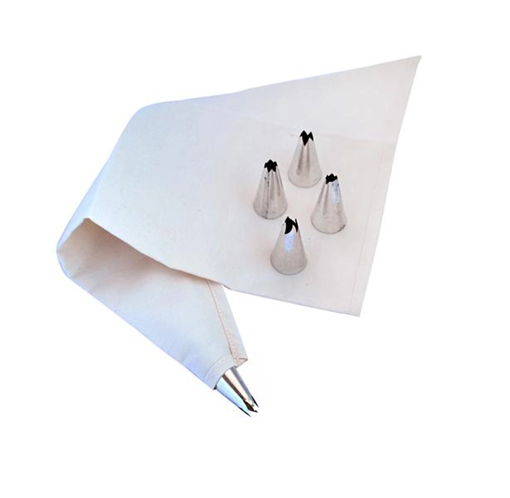 Ovaj univerzalni set savršen je za ukrašavanje kremom, šlagom i glazurom. Pamučna vrećica pruža udoban hvat, izdržljiva je i višekratna. Metalni nastavci osiguravaju precizne oblike i čiste linije, zahvaljujući kojima ćete izraditi profesionalno izgledajuće torte i deserte.