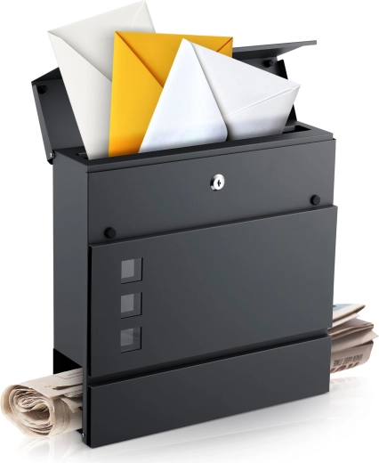 Zidni poštanski sandučić s držačem za novine 37 × 37 × 10,5 cm antracit