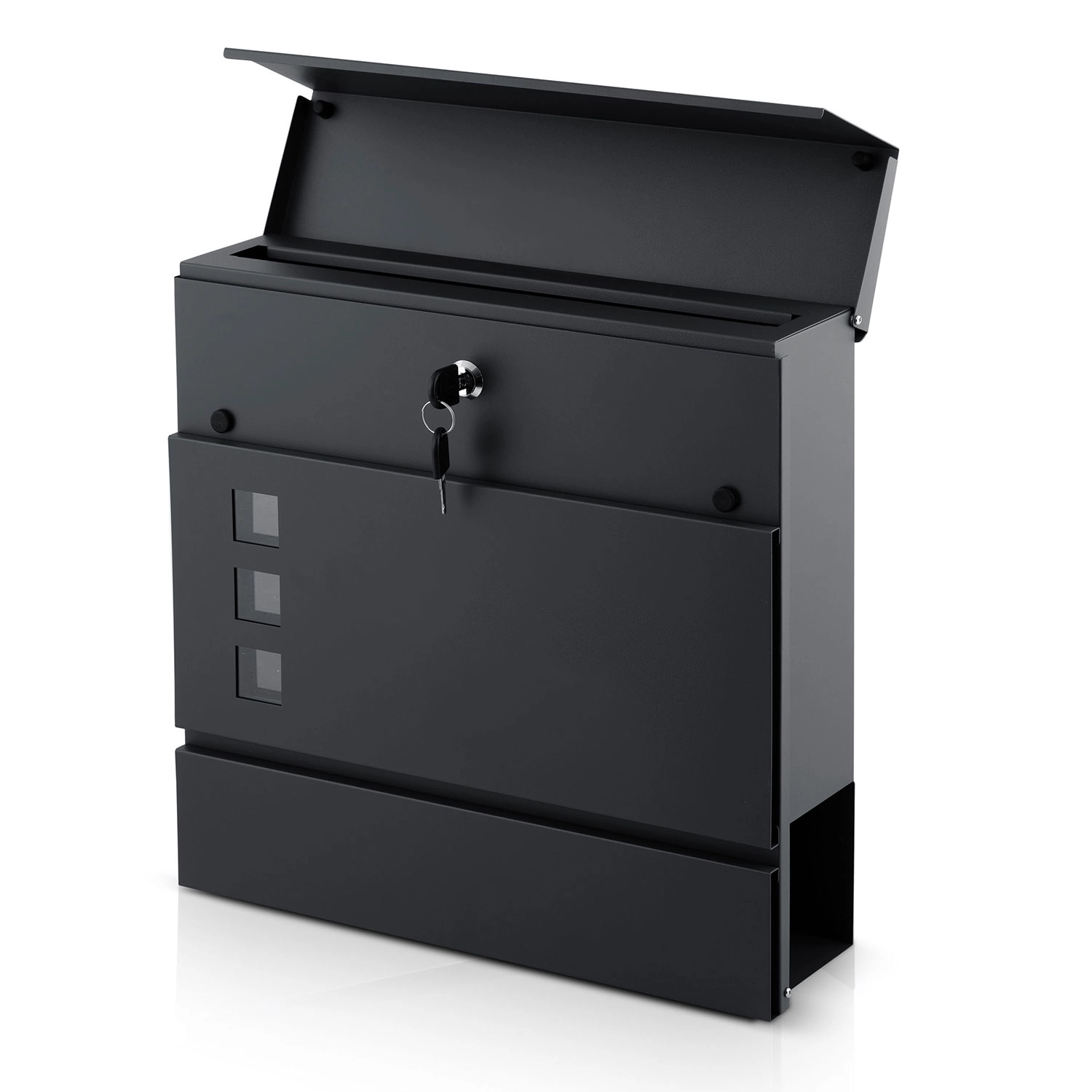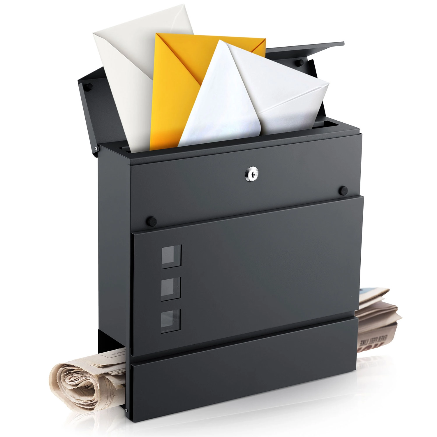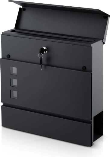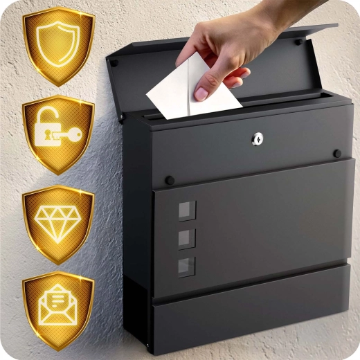 Donji držač za novine pruža odvojeno mjesto za novine i letke, dok prozorić omogućuje brzu provjeru sadržaja bez otključavanja. Za sigurnost se brine čvrsta brava s dva ključa – jedan kao rezerva. Montažu ćete obaviti u nekoliko trenutaka zahvaljujući priloženoj opremi i 4 montažnim točkama koje osiguravaju čvrsto pričvršćenje na zid ili ogradu.