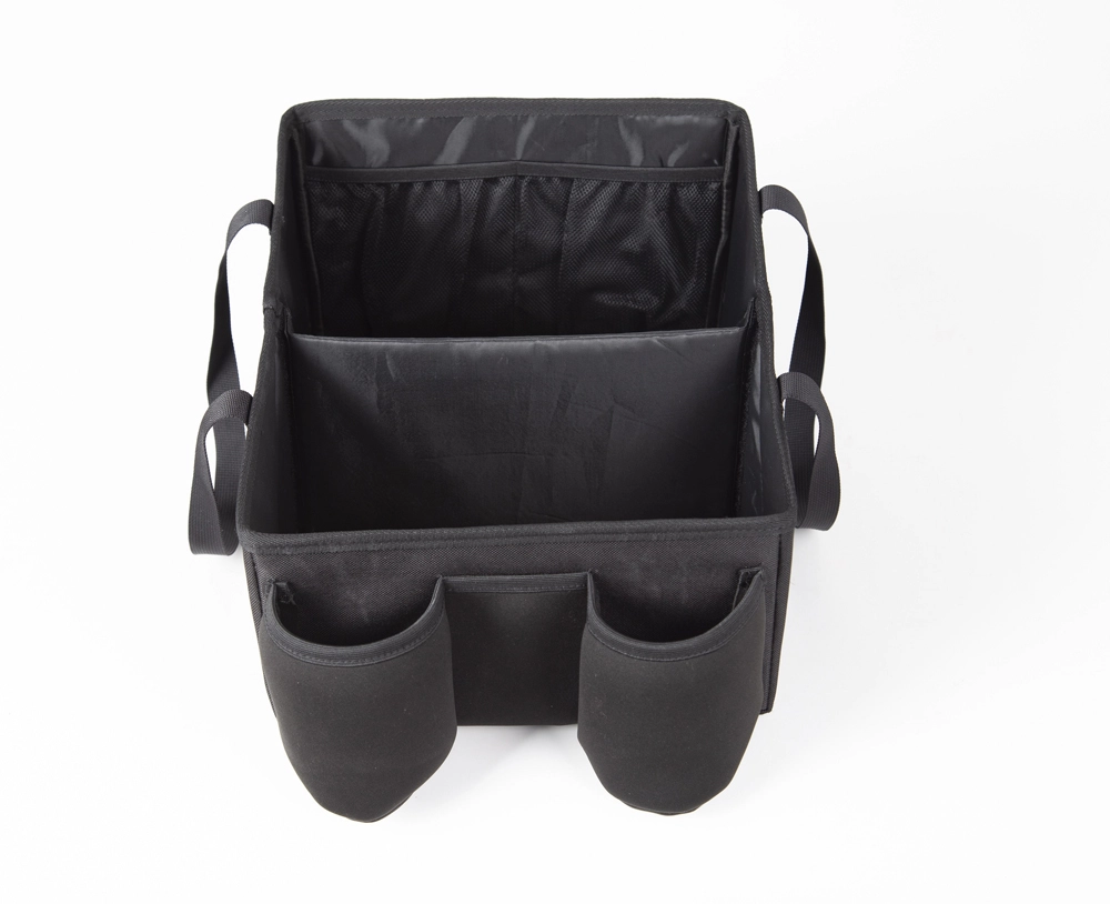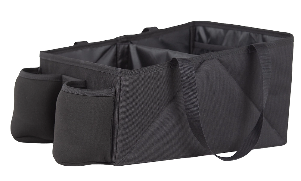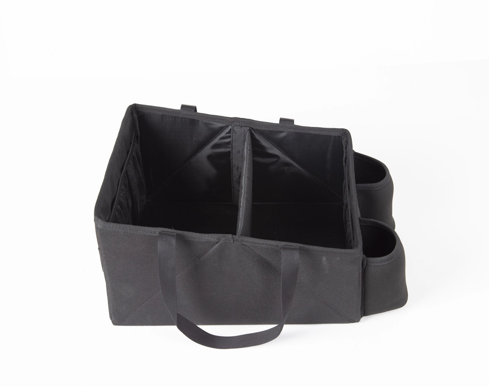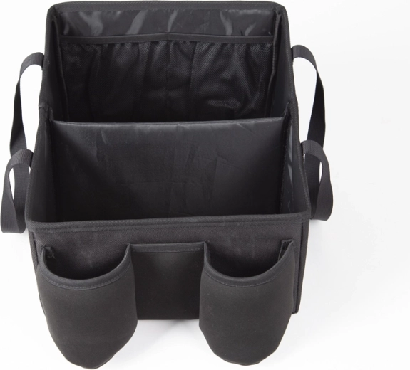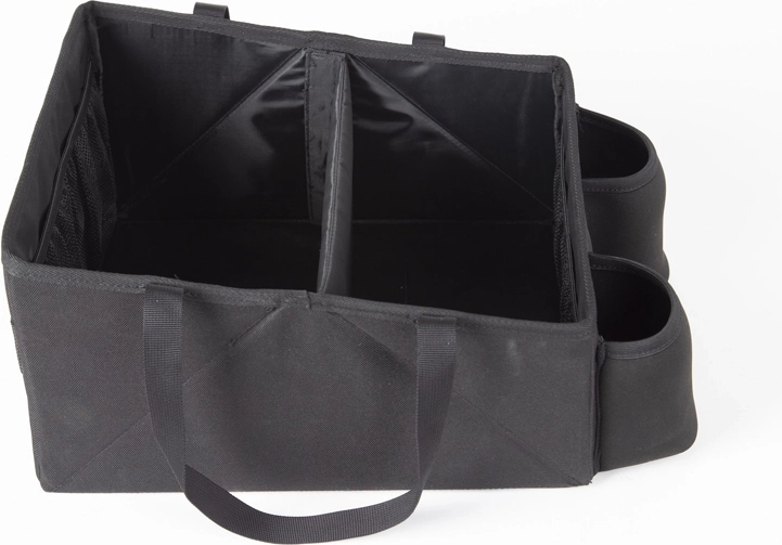 Spremnik nudi velik unutarnji prostor podijeljen u 2 pregrade, dopunjen s 2 mrežasta džepa za dodatke. Na prednjoj strani nalaze se 2 držača za boce ili termosice, pa su napitci uvijek pri ruci. Konstrukcija je sklopiva – u trenu ga složite na ravno, prenesete pomoću izdržljivih ručki i ponovno rasklopite.
