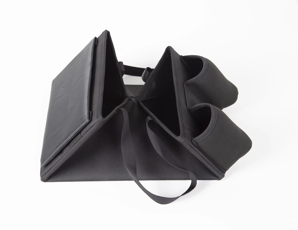 Jednostavno pričvršćivanje sigurnosnim pojasom na stražnjem sjedalu ili između dvije dječje sjedalice. U prtljažniku zadržava oblik i drži stvari na mjestu.