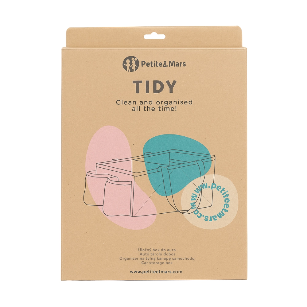 Praktičan organizator za auto Petite&Mars Tidy pomoći će vam držati sve potrebno nadohvat ruke i bez nereda. Idealan je za obitelji s djecom – stane između dviju autosjedalica, lako se pričvrsti sigurnosnim pojasom i jednako dobro funkcionira i u prtljažniku. Zahvaljujući čvrstim stijenkama i promišljenoj organizaciji pregledno sprema igračke, pelene, užine, maramice i sitnice.