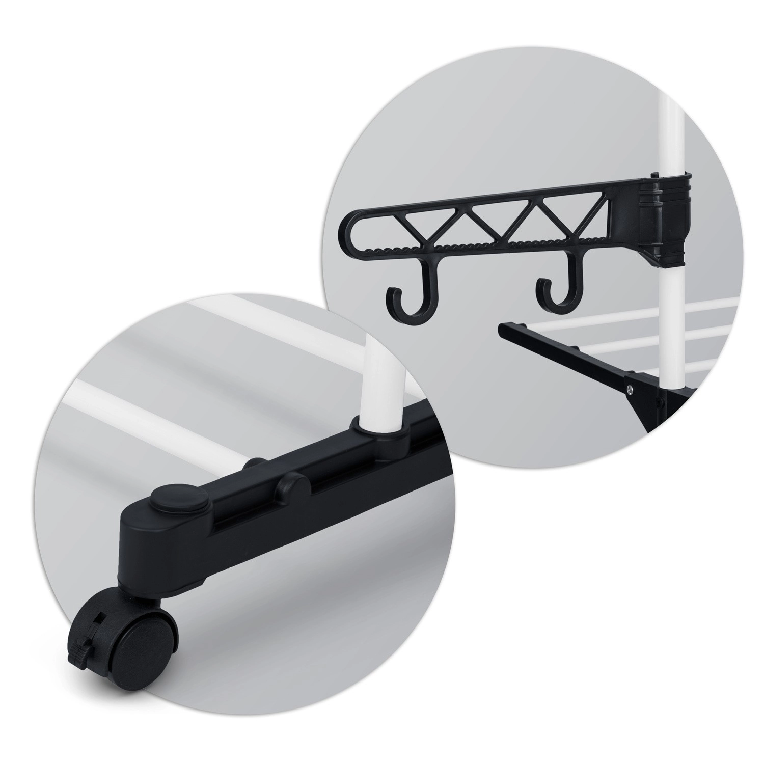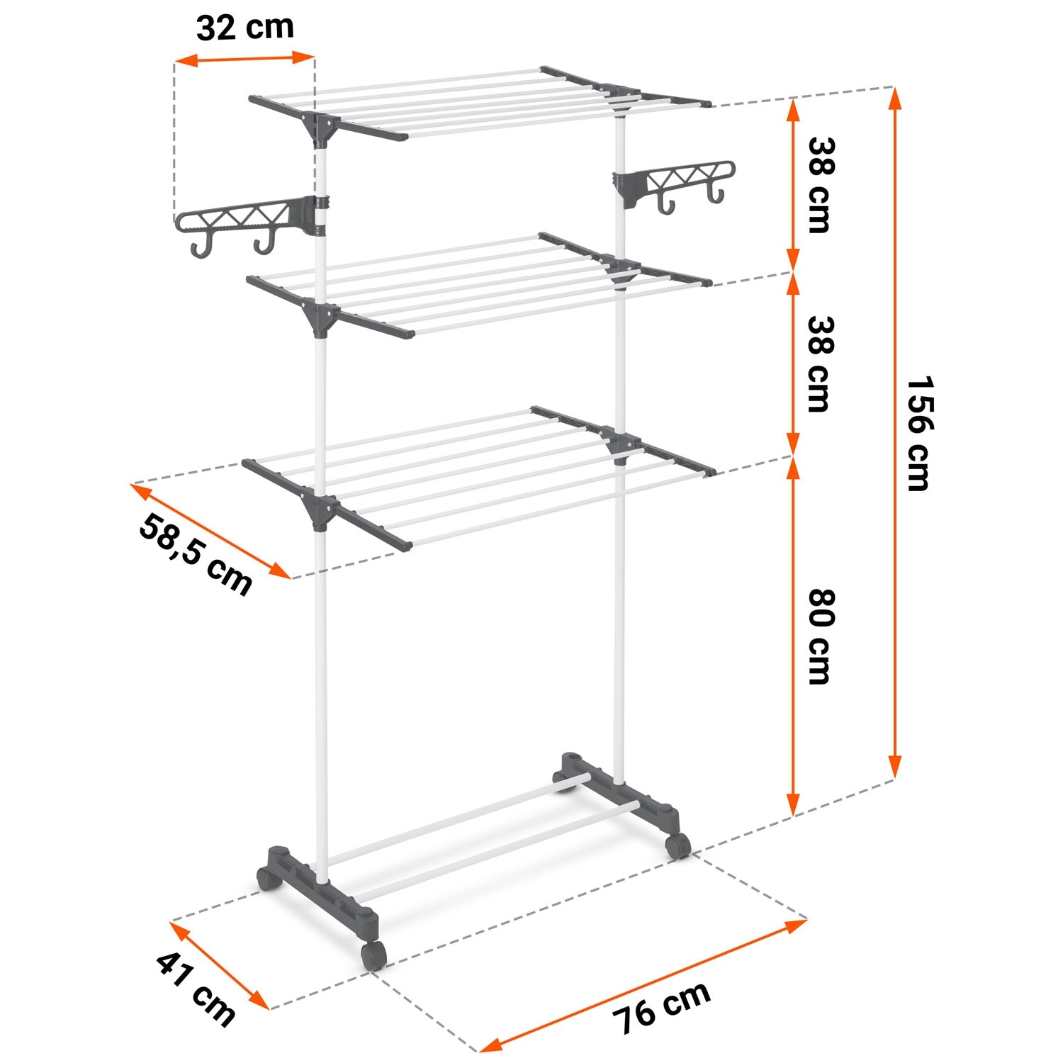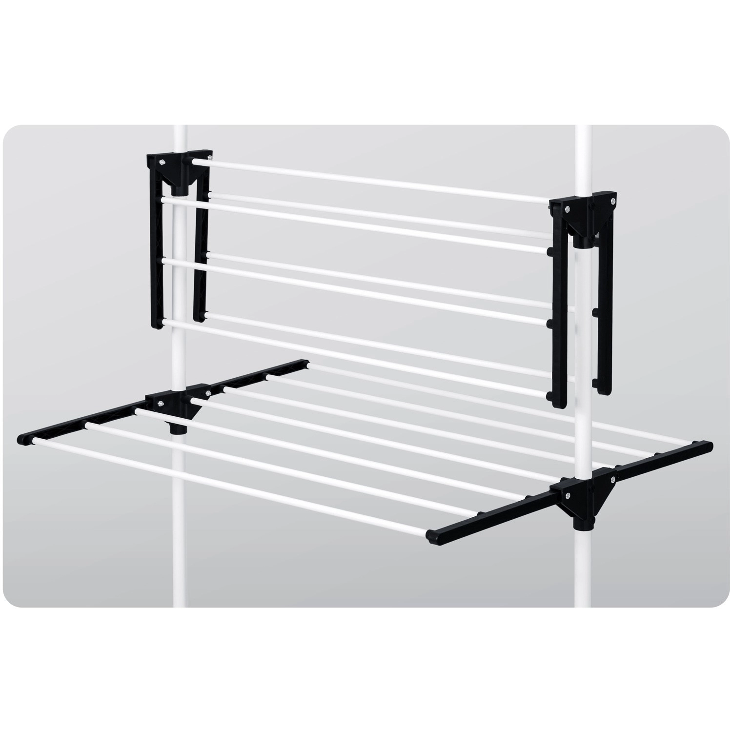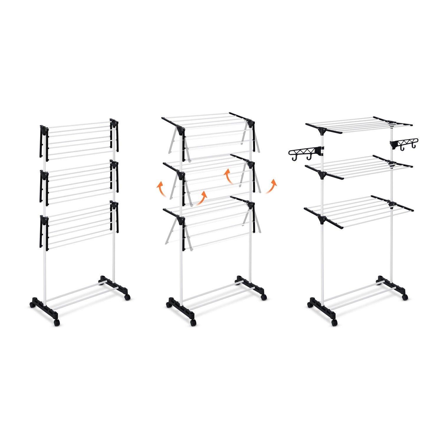 Bočni držači za vješalice i donje rublje štede prostor. Sklopiva krila prilagodite trenutačnoj količini rublja.