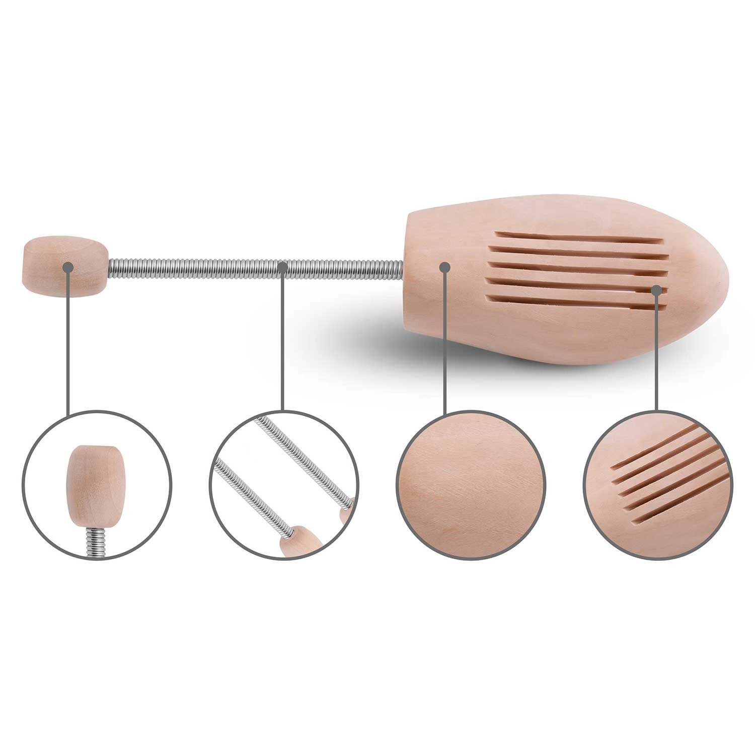 Pružite svojim cipelama profesionalnu njegu. Opružni napinjači MASSIDO od borovine trenutno izravnavaju kožni gornjište, zatežu vrh i nart te ubrzavaju sušenje nakon nošenja. Zahvaljujući učinkovitoj apsorpciji vlage prirodnim drvetom, obuća ostaje svježa i bez neprivlačnih nabora.