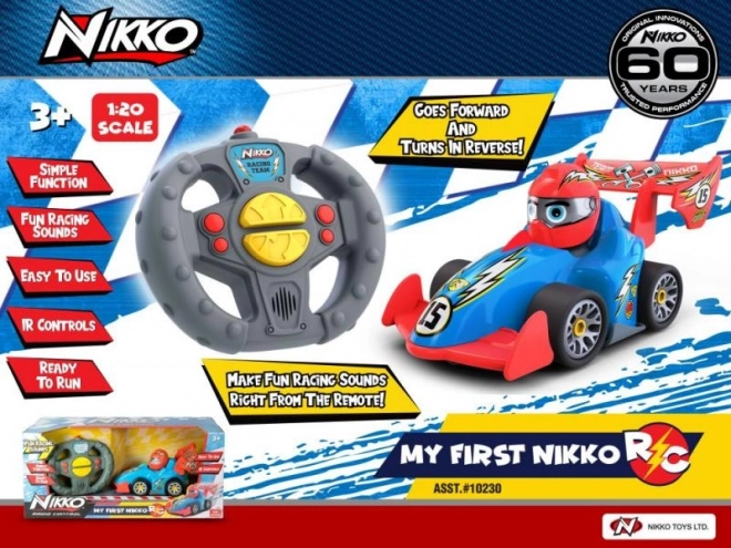 My First Nikko idealan je prvi RC auto za malu djecu. Zahvaljujući lako upravljivom daljinskom upravljaču djeca se brzo uče voziti, voziti unatrag i otkrivati svijet utrkivanja uz vesele zvučne efekte. Mekani rubovi i izdržljivi materijali jamče sigurnu i ugodnu igru kod kuće i na putu.