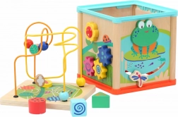 Ova drvena motorička kocka Garden od small foot donosi djeci raznolik svijet aktivnosti na svakoj stranici. Okretni poklopac s labirintom od perlica, umetaljka s oblicima i zupčanici drže male istraživače fokusiranima, potiču strpljenje i prirodno razvijaju kognitivne vještine.