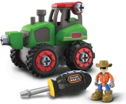 Na izbor su dvije odlične varijante poljoprivredne mehanizacije (npr. traktor ili kombajn). Svaki set uključuje šarene dijelove, funkcionalne spojne vijke i simpatičnu figuricu farmera. Izdržljiva plastična izrada idealna je za svakodnevnu igru kod kuće i na putu.