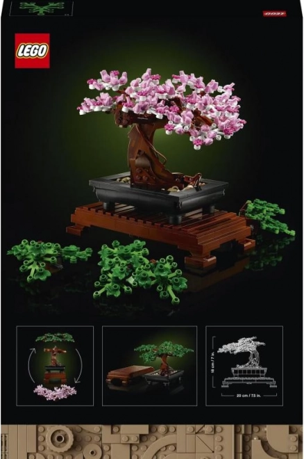 LEGO Drvo Bonsai je savršen poklon i privlačan projekt za one koji vole bonsai, biljke i kreativno građenje s LEGO kockama. Set uključuje izmjenjive dijelove koji omogućuju ukrašavanje stabla klasičnim zelenim listovima ili ružičastim cvjetovima trešnje. Cvjetovi su zanimljivo oblikovani malim žabicama i model se zahvaljujući pravokutnoj posudi i postolju lako izlaže u interijeru. Dimenzije modela su približno 18 cm visine, 21 cm dužine i 20 cm širine.