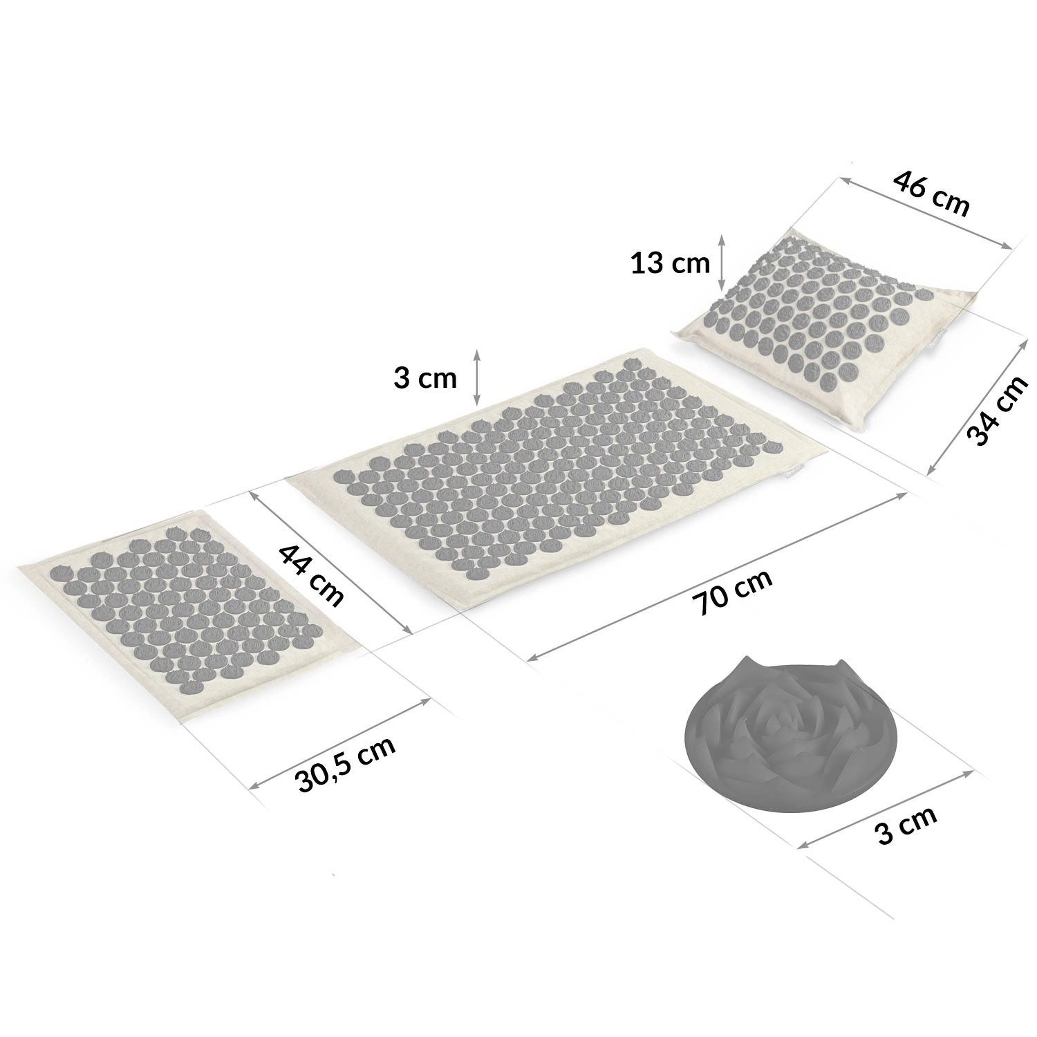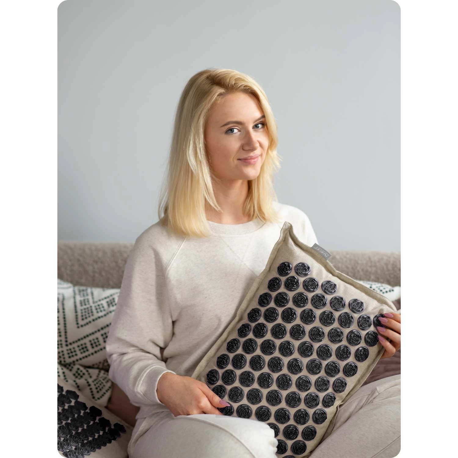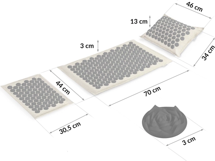 Glavna podloga ima 240, a jastučić 76 akupresurnih rozeta za ciljanu stimulaciju pritiska – idealno za leđa, vrat i ramena.