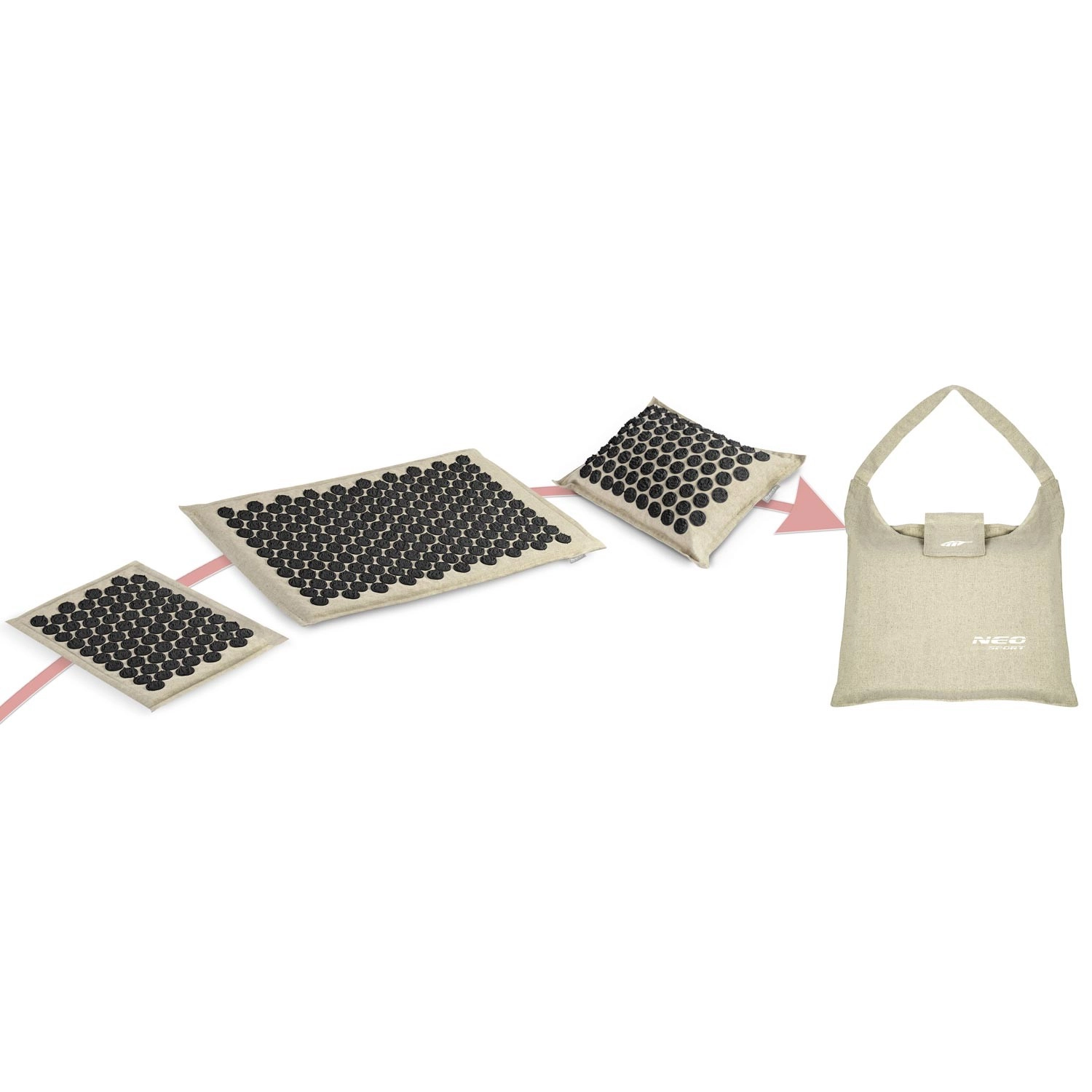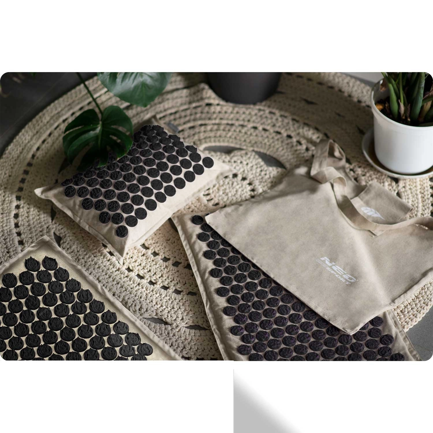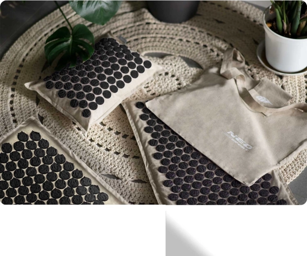Akupresurni set NEO SPORT dizajniran je za svakodnevnu relaksaciju, poticanje cirkulacije i opuštanje mišićne napetosti u području leđa, vrata i ramena. Gusto raspoređene plastične rozete s iglicama djeluju na akupresurne točke, čime mogu pomoći kod bolova u glavi i vratu, bolova u leđima, pri stresu ili umoru. Zahvaljujući dvjema podlogama i jastučiću lako prilagođavate područje tretiranja.