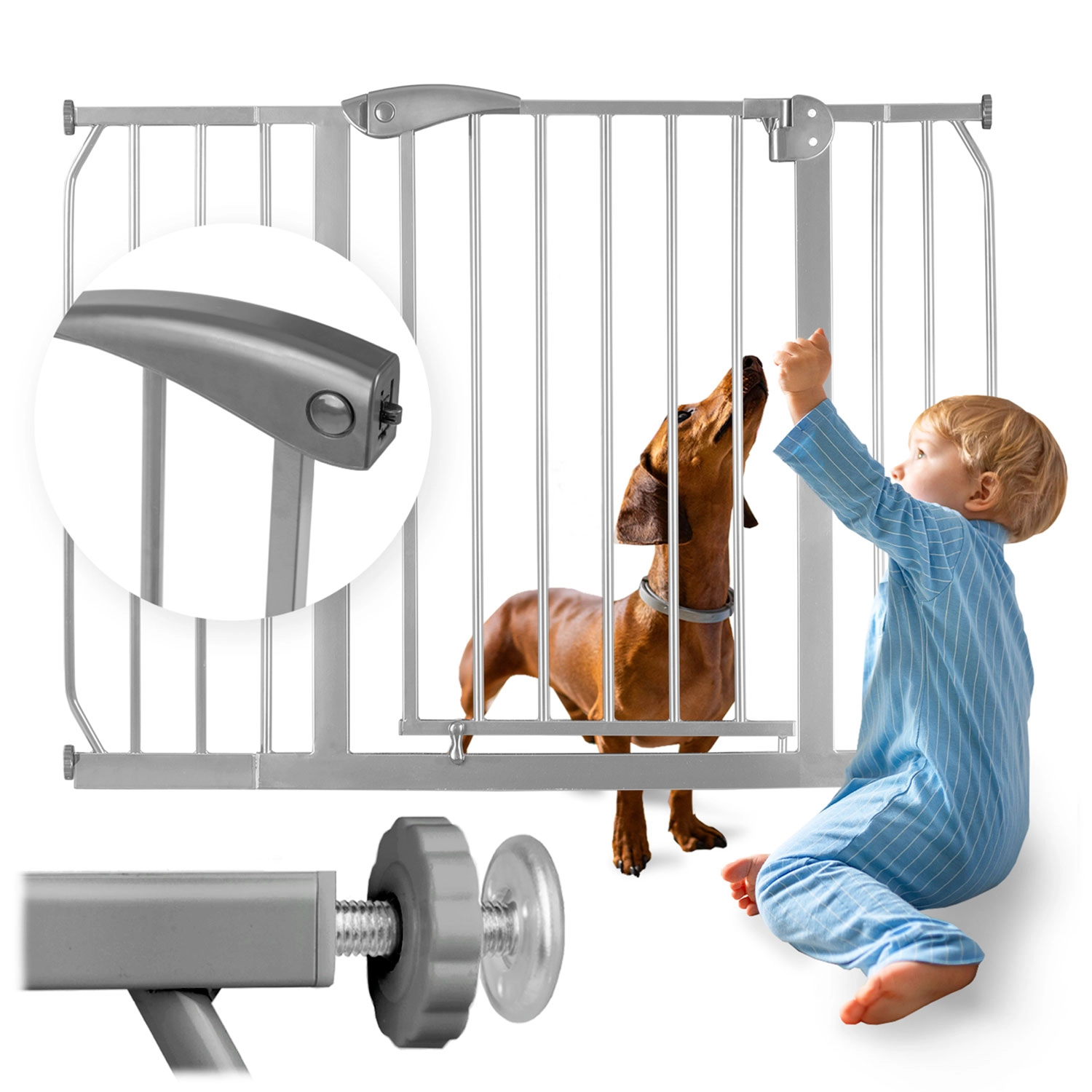 Siva sigurnosna brava NUKIDO za djecu i kućne ljubimce, 75–115 cm