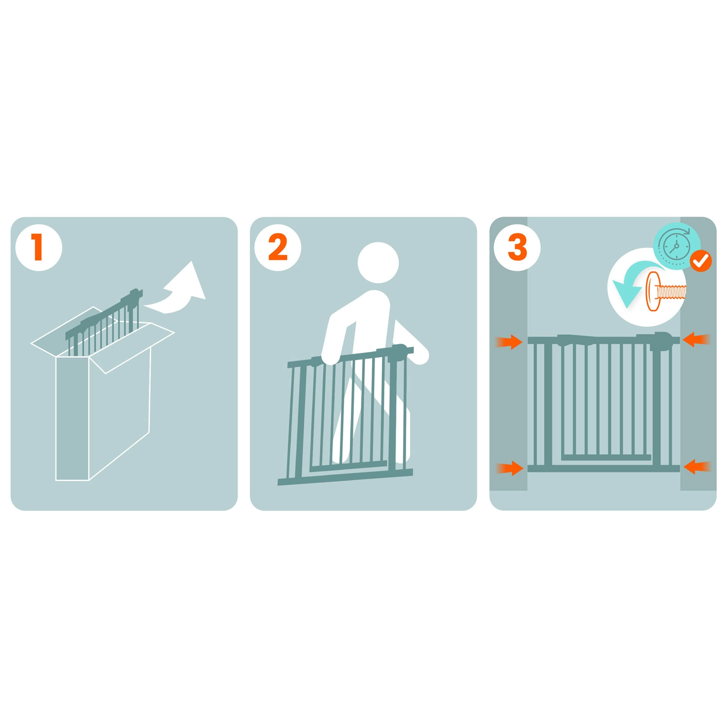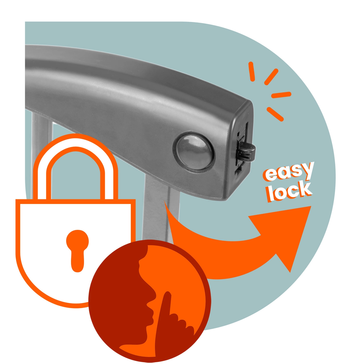 Pametna brava s dvostupanjskim osiguranjem djeci je teško otvoriva, no odrasli je mogu udobno upravljati jednom rukom. Vrata se otvaraju na obje strane, mogu se blokirati pod kutom od 90°, a tu je i tiho zatvaranje s automatskom zasun-bravom. Četiri točke učvršćenja i robustan metal osiguravaju stabilnost i dug vijek trajanja.