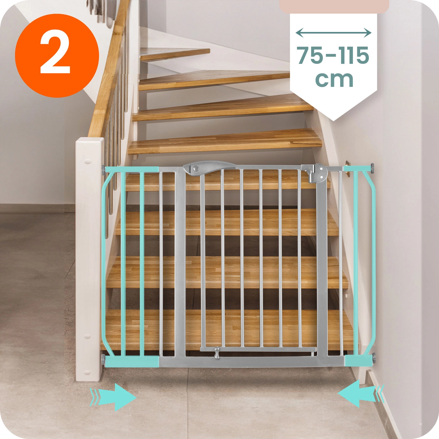 Praktična siva sigurnosna brava NUKIDO s jednostavnom ugradnjom bez bušenja štiti djecu i kućne ljubimce od ulaska na stepenice ili u opasna mjesta. Zahvaljujući raspornom učvršćenju, podesivoj širini 75–115 cm i otvaranju jednom rukom idealna je za vrata i prolaze. Dvostupanjsko zaključavanje, dvosmjerno otvaranje i certifikacija EN1930:2011 osiguravaju visoku razinu sigurnosti u svakom domu.