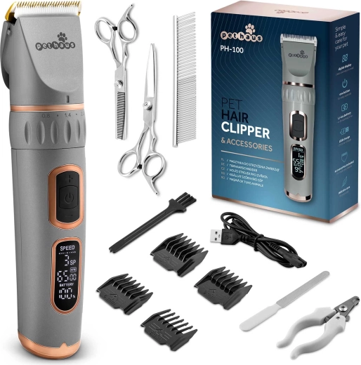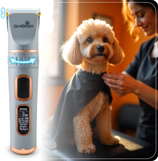 PETHAUS PH-100 je pouzdan šišač za pse i mačke koji kombinira visok učinak s tihim radom kako bi šišanje vašem ljubimcu bilo što ugodnije. Izdržljive čelične oštrice osiguravaju precizan i gladak rez bez povlačenja, a LCD zaslon prikazuje stanje baterije, brzinu i način rada, tako da uvijek imate potpunu kontrolu.