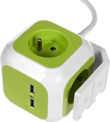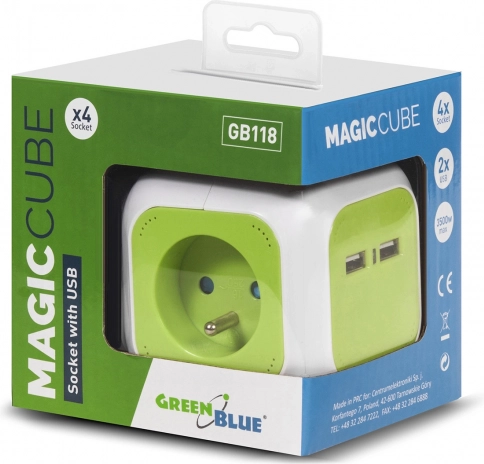 Razdjelnik GREENBLUE Magic Cube učinkovito proširuje broj dostupnih utičnica i omogućuje istovremeno napajanje više uređaja. Dva integrirana USB porta osiguravaju brzo i praktično punjenje telefona, tableta ili slušalica bez potrebe za zasebnim punjačem. Kompaktan kubični dizajn štedi prostor i sprječava blokiranje susjednih utičnica.