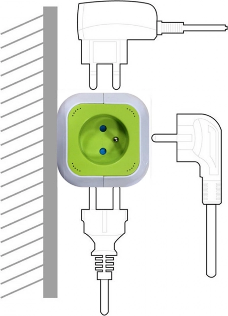 Kockasti oblik s 4 utičnice na različitim stranama štedi prostor i omogućuje praktično spajanje i glomaznijih utikača bez međusobnog blokiranja.