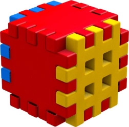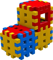 Nazubljeni rubovi i rešetkaste površine omogućuju čvrsto povezivanje dijelova i gradnju jednostavnih 3D oblika, kocaka i tornjeva.