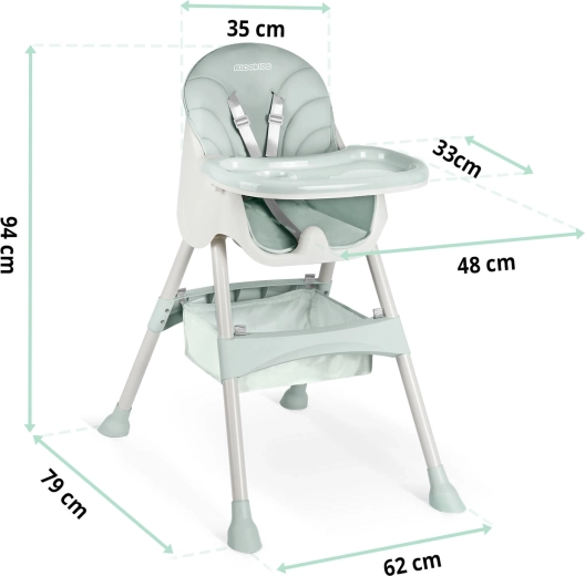 - 3-u-1 – raste s djetetom: visoka hranilica, nisko sjedalo, booster.
