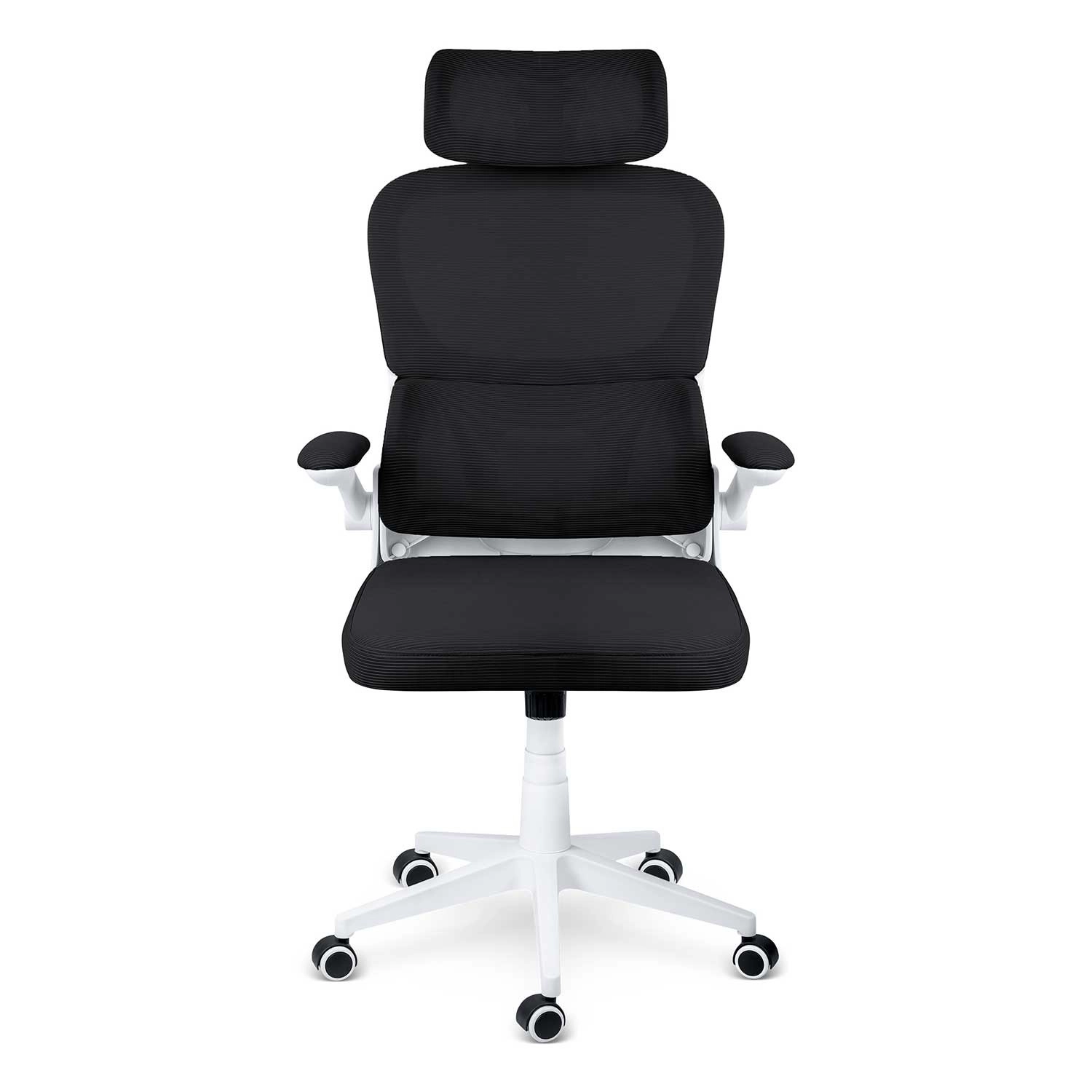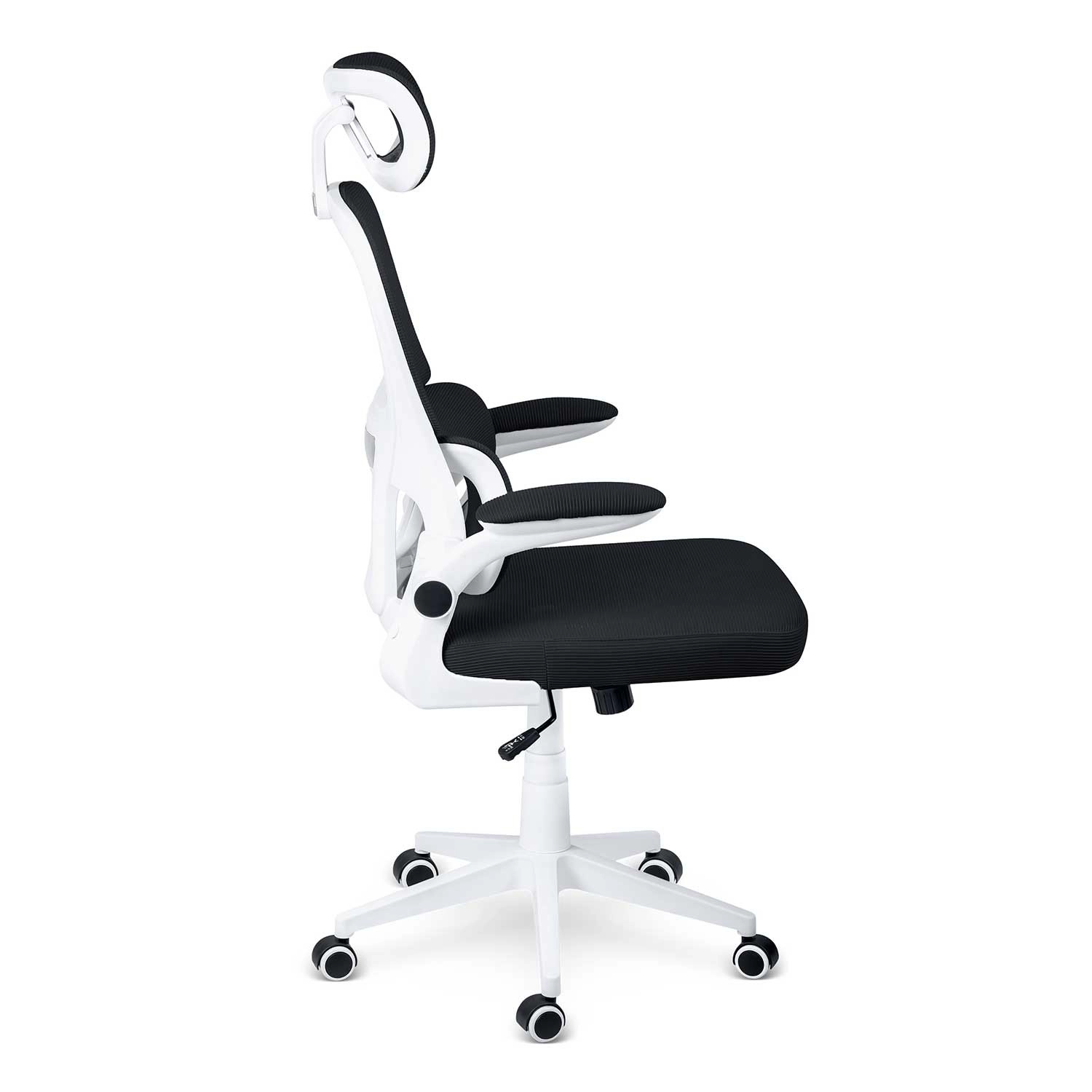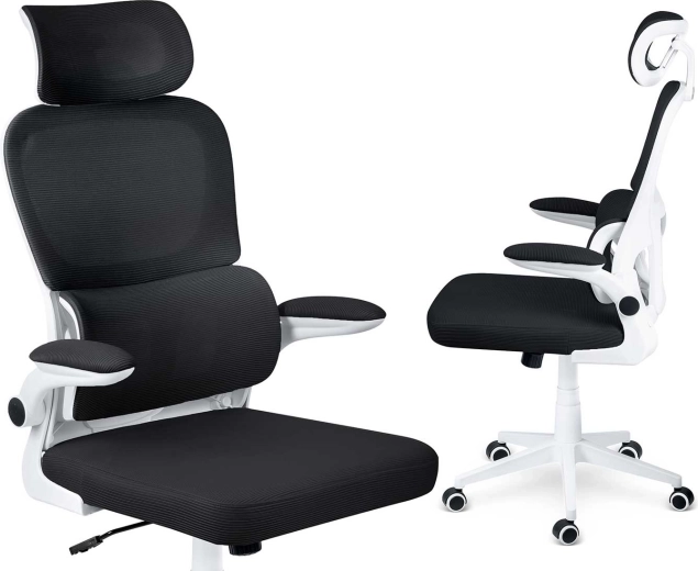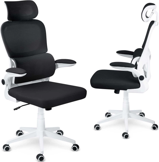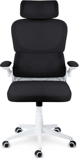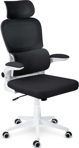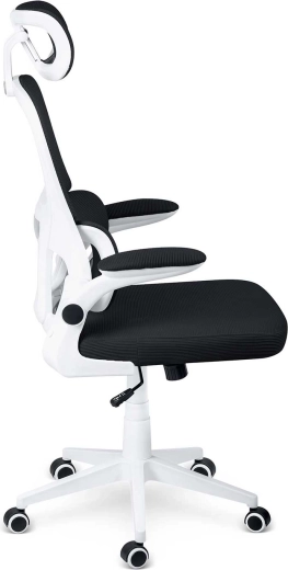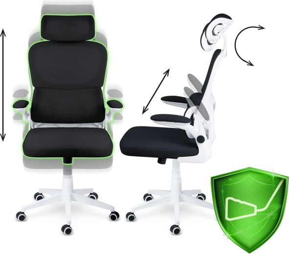 Ergonomska stolica SOFOTEL FORMAX u elegantnoj crno‑bijeloj izvedbi spaja udobnost, prozračnost i moderan dizajn. Nudi podesivu visinu pomoću plinskog podizača SoftUp™, njihajući mehanizam SoftSwing™ za kratki odmor, podesiv naslon za glavu i potporu lumbalnom dijelu za zdravo sjedenje. Tihe gumirane kotačiće štite pod, a peterokraka baza osigurava stabilnost i glatku pokretljivost.