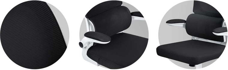 Oblikovani lumbalni dio, prozračna mikromreža i gusta elastična pjena u sjedištu podupiru pravilno držanje tijela i smanjuju umor pri dugotrajnom sjedenju.