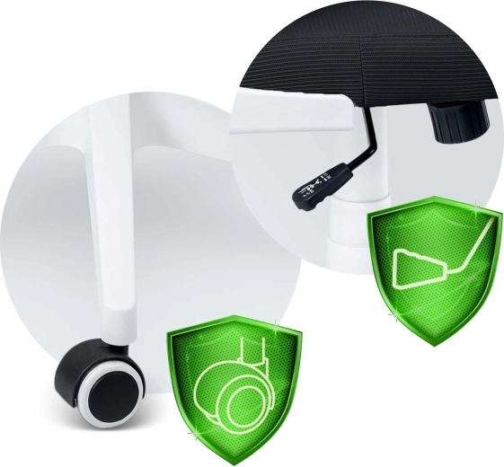 Nylon‑gumirani dvostruki kotačići kreću se glatko i tiho te su nježni prema podovima. Peterokraka baza osigurava stabilnost i sigurnost.