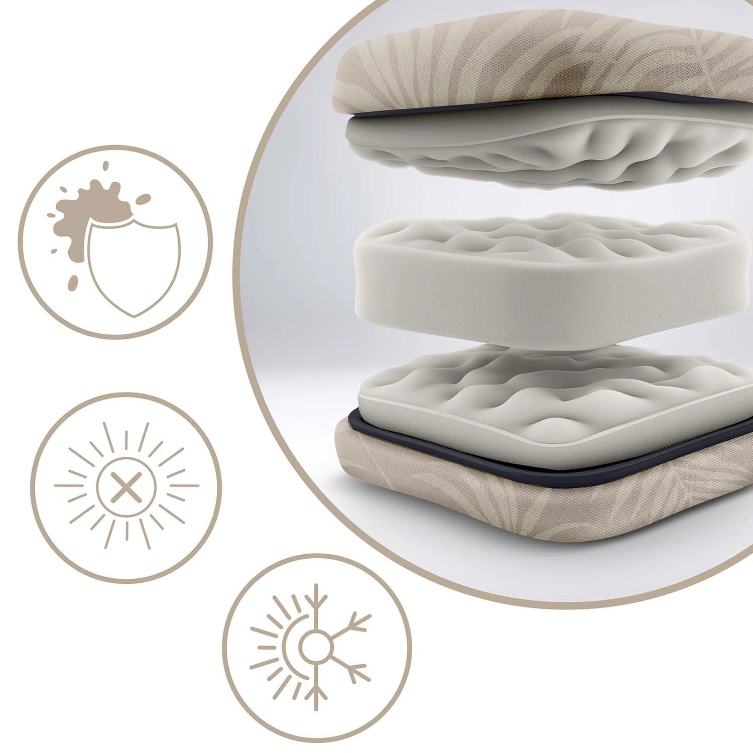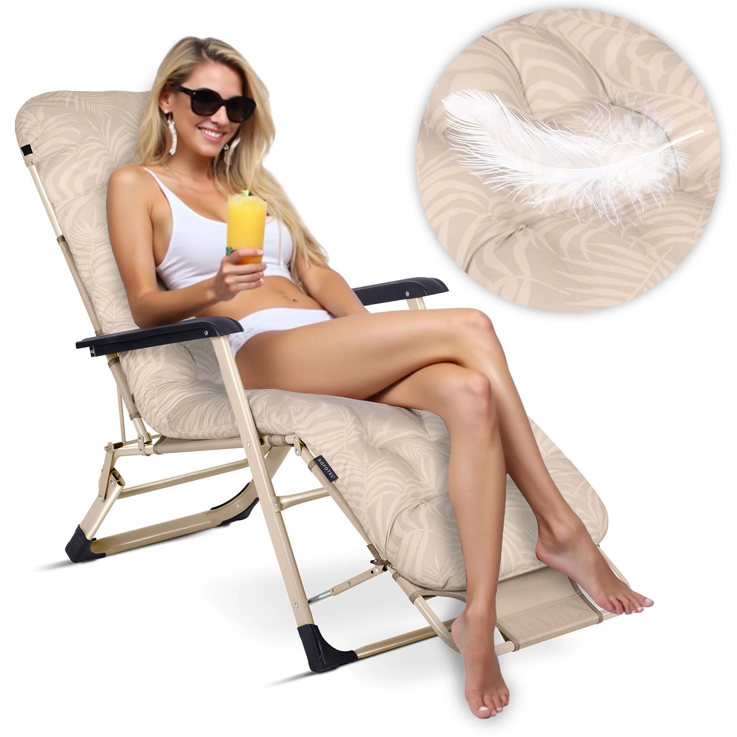 Debelo punjen, prošiven jastuk i podesivi naslon za glavu pružaju mekanu potporu za cjelodnevni odmor u vrtu i uz bazen.