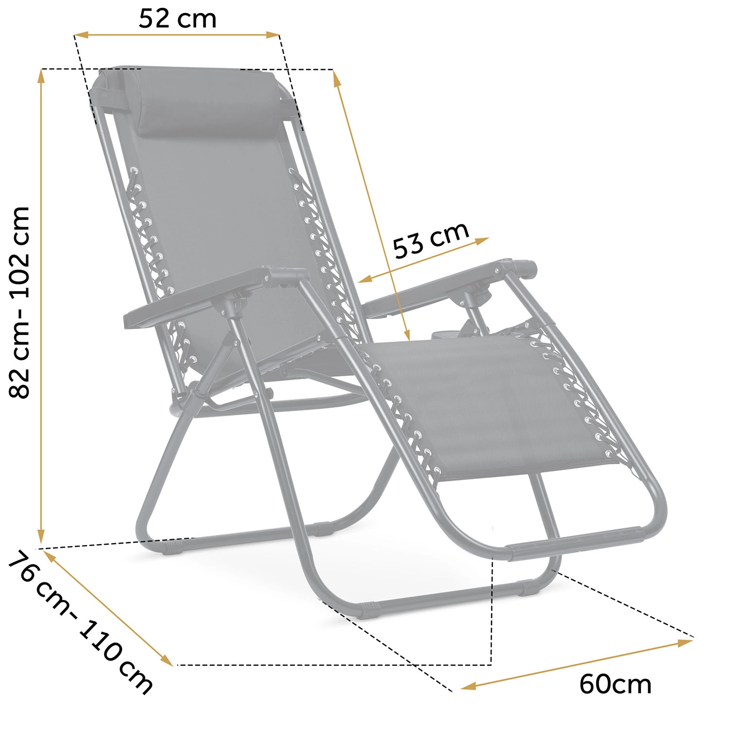 Za vašu udobnost tu su mekani jastuk za glavu, bočni odlagalni stolić za napitak, knjigu ili telefon te 3 razine nagiba s jednostavnim zaključavanjem. Navlaka od vodootporne i UV otporne tkanine textilene prozračna je, brzo se suši i lako čisti, dok čelični okvir s praškastim premazom pruža visoku stabilnost.