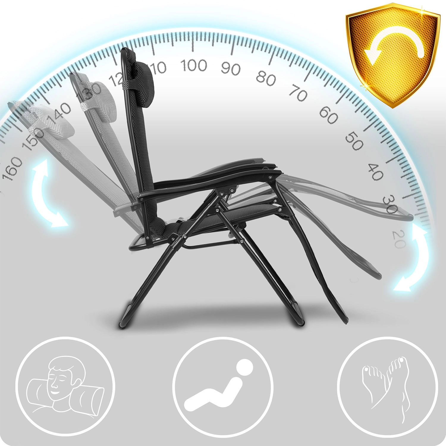 Glatko podešavanje nagiba s aretacijom omogućuje položaj u kojem su noge u razini srca. Time se poboljšava krvotok, rasterećuje kralježnica i tijelo se savršeno opušta.