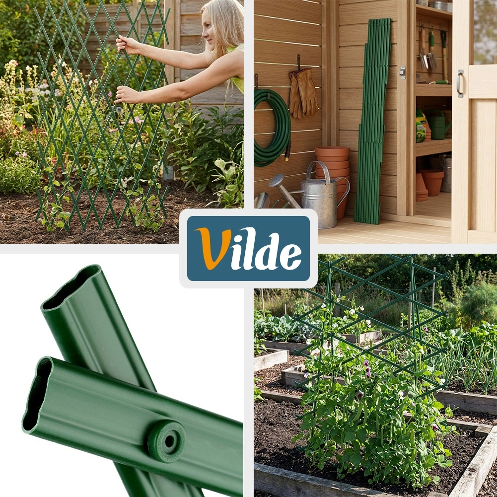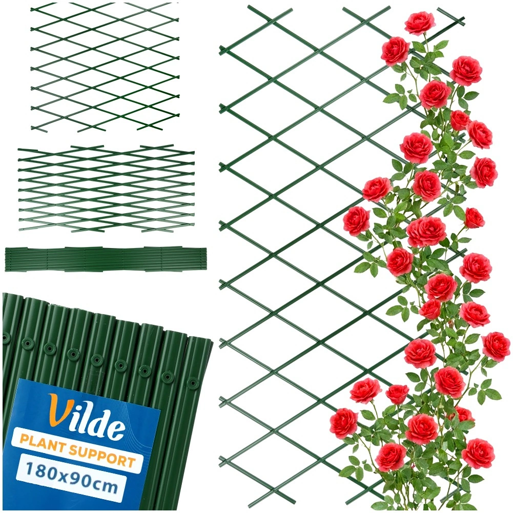 Praktična vrtna rešetka za penjačice dimenzija 180 × 90 cm nudi sklopivu konstrukciju, izdržljivu plastičnu izradu i jednostavnu montažu. U zelenoj boji prirodno se stapa s vrtom te odlično podupire ruže, bršljan ili vinovu lozu u vrtu, na balkonu i terasi.