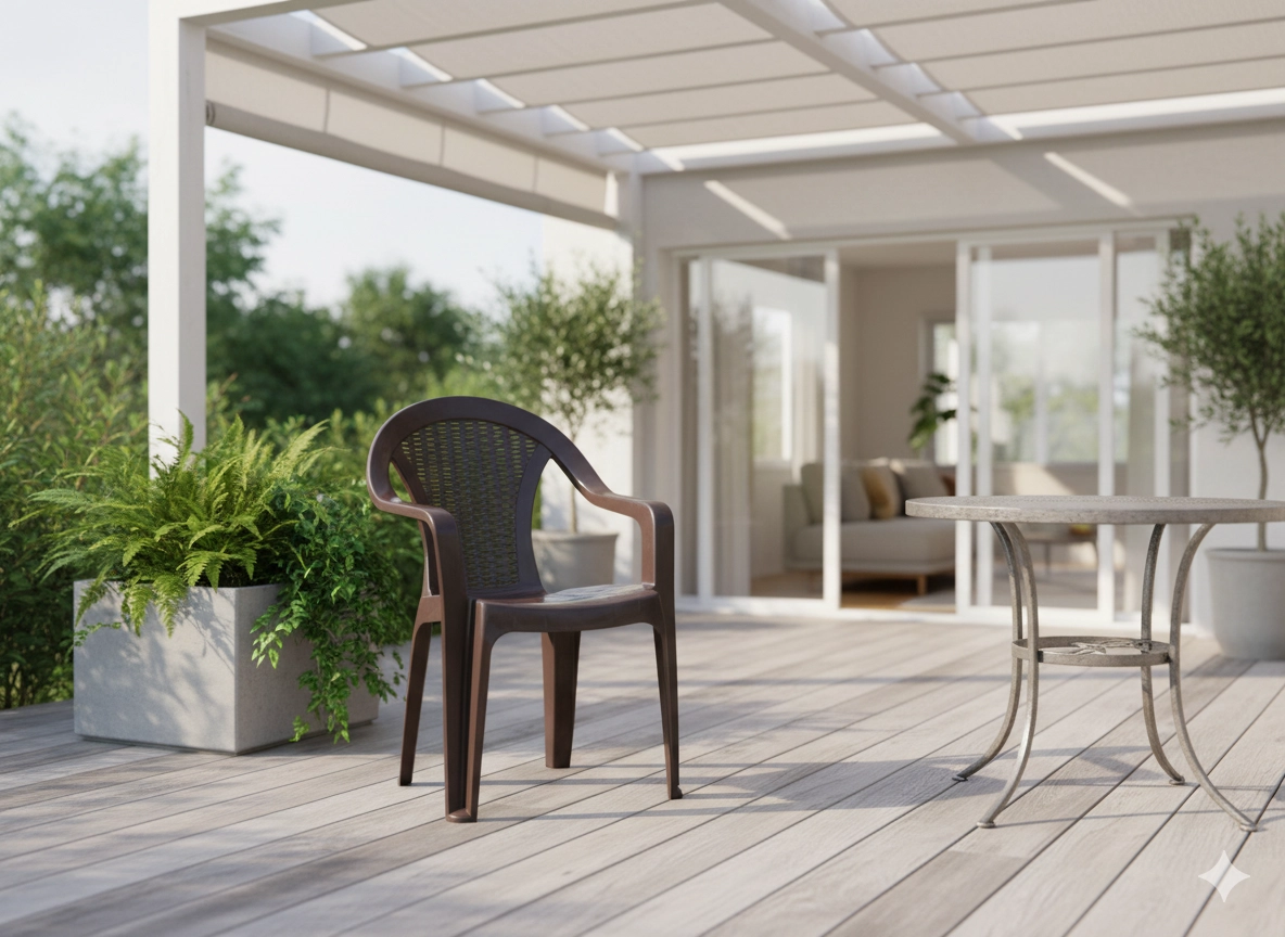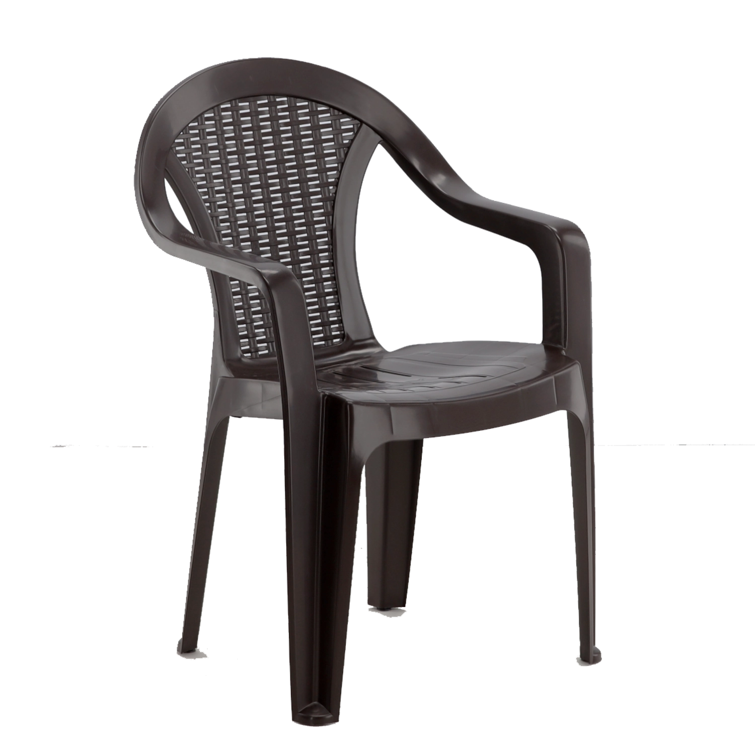 Kreirajte ugodan kutak za sjedenje u vrtu, na terasi ili balkonu. Ova smeđa plastična fotelja spaja klasičan dizajn s izdržljivim materijalima i svakodnevnom udobnošću. Zahvaljujući čvrstoj četveronožnoj konstrukciji stabilna je, a pritom ostaje lagana i jednostavna za premještanje.