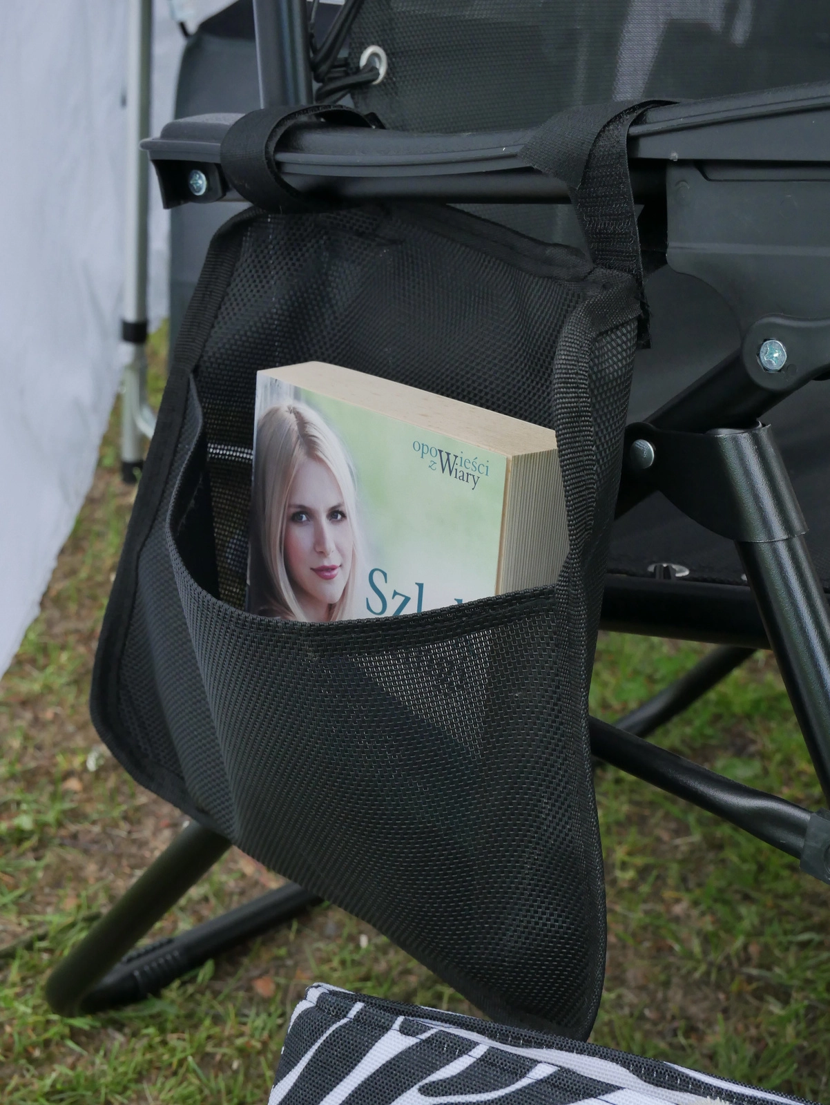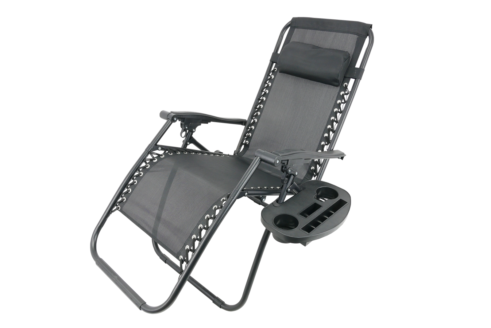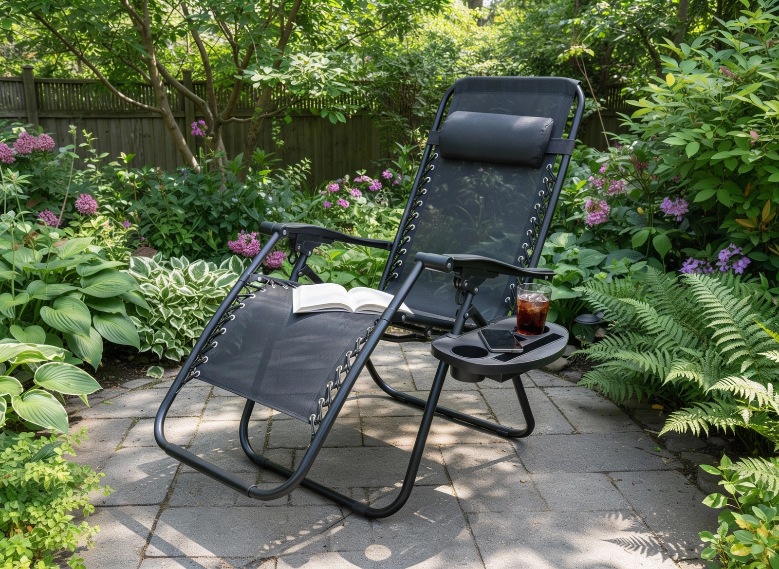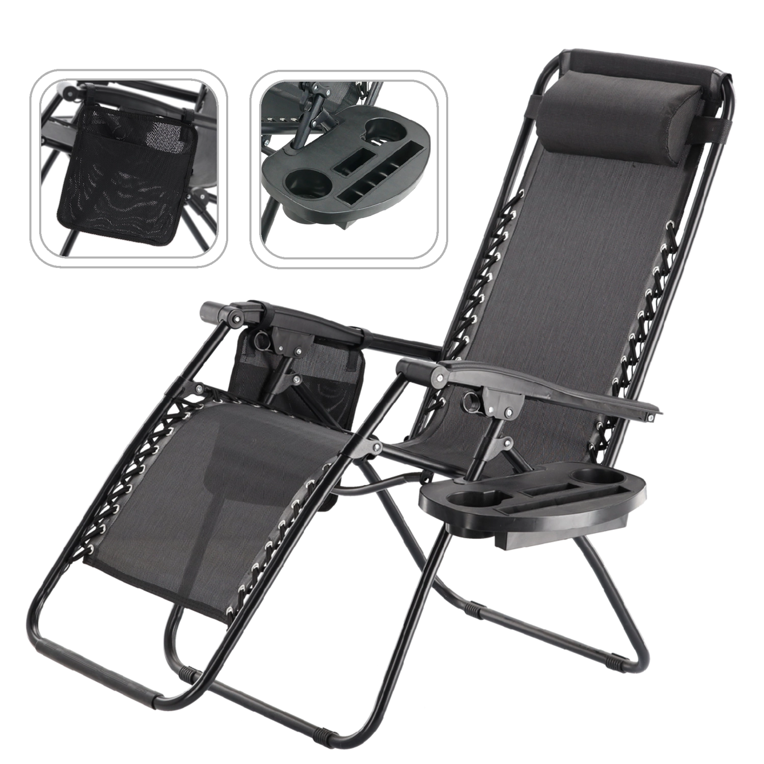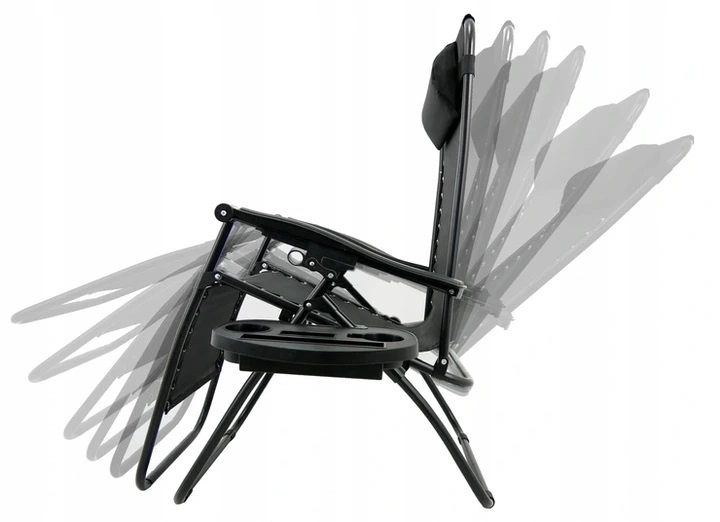 Sklopiva vrtna ležaljka s poslužavnikom, džepom i jastučićem – crna