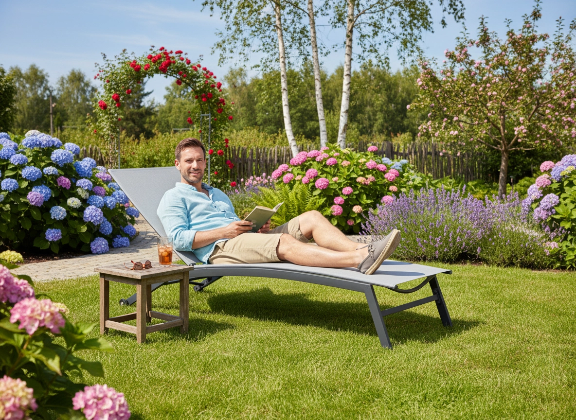 Naslon s više položaja omogućuje glatko podešavanje od čitanja do potpunog sunčanja. Materijali otporni na vremenske uvjete dodatno minimaliziraju potrebe za održavanjem, tako da možete u potpunosti uživati u opuštanju bez briga.