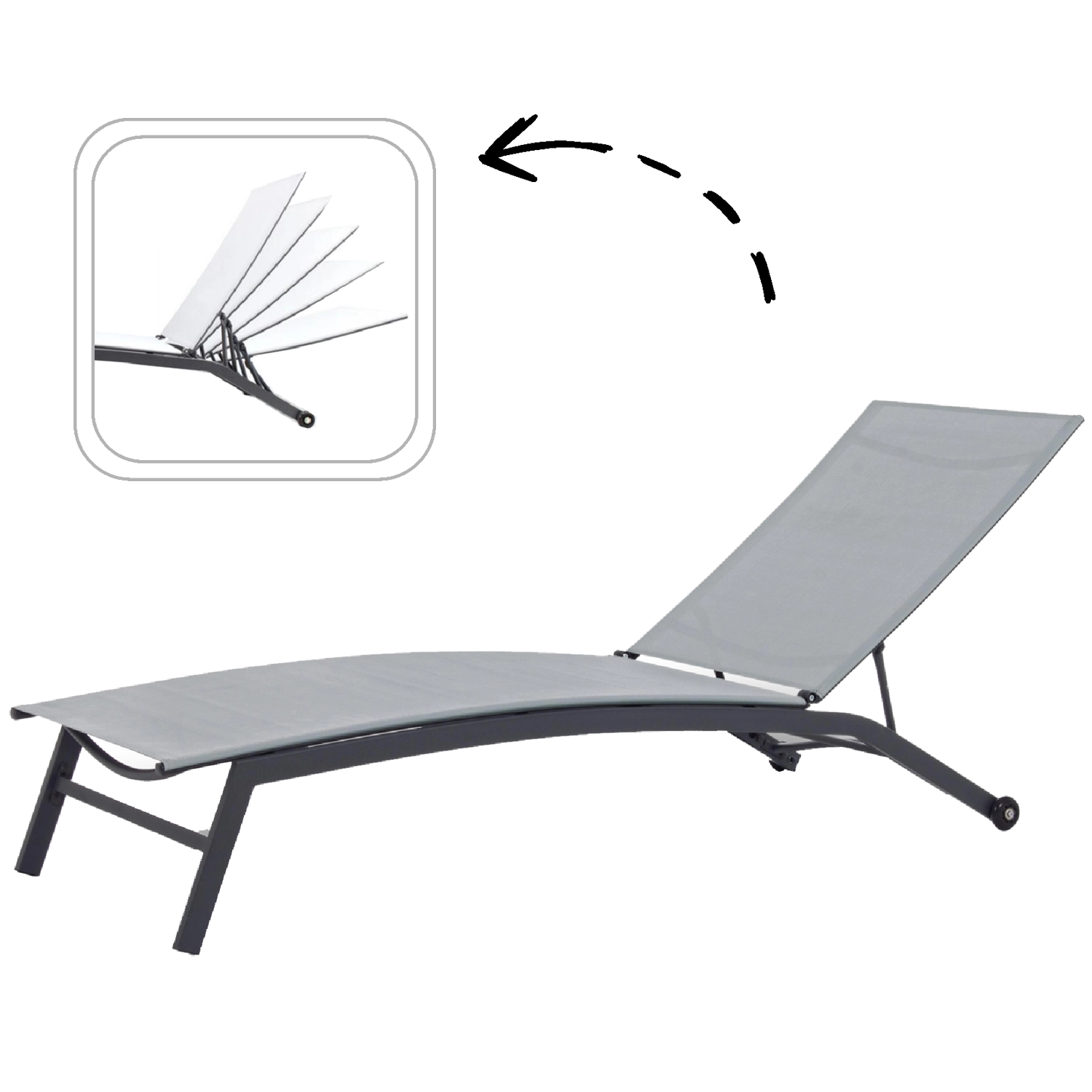 Ova udobna vrtna ležaljka dizajnirana je za svakodnevni odmor na terasi, uz bazen i u vrtu. Stabilna metalna konstrukcija i prozračni Textilene pružaju sigurnost, izdržljivost i udobnost pri sjedenju i ležanju. Zahvaljujući elegantnoj sivoj izvedbi lako se uklapa u moderan vanjski namještaj.