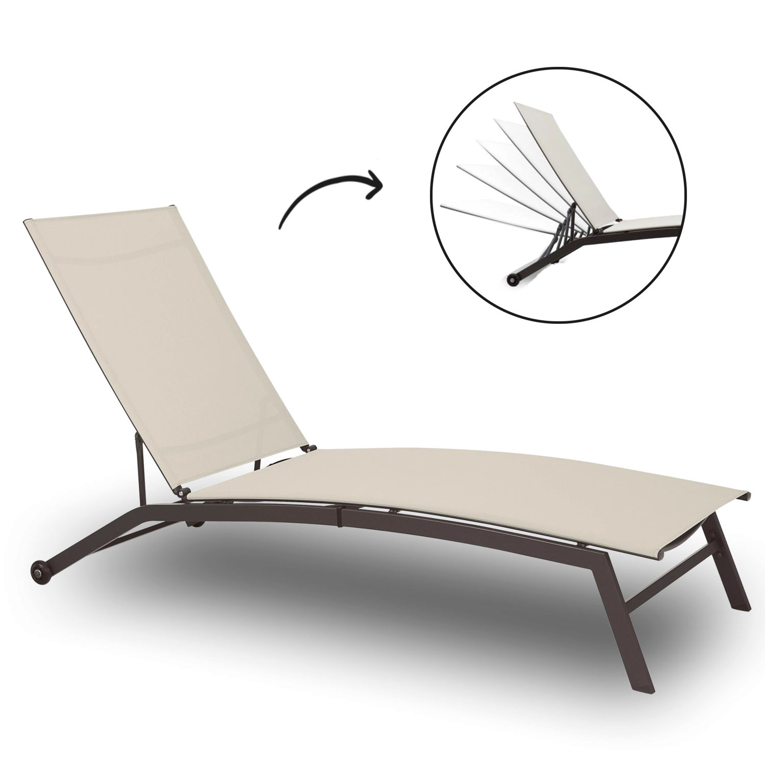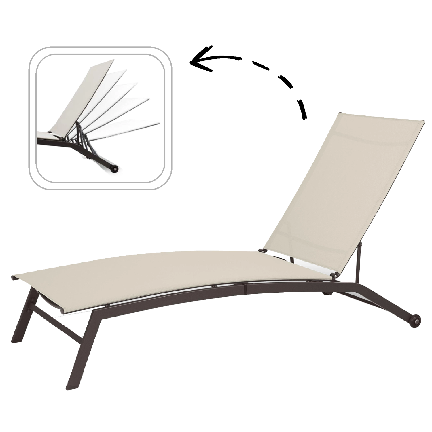 Namjestite kut naslona točno kako vam odgovara – od čitanja do potpunog sunčanja. Stabilan mehanizam sigurno i udobno drži odabrani položaj.