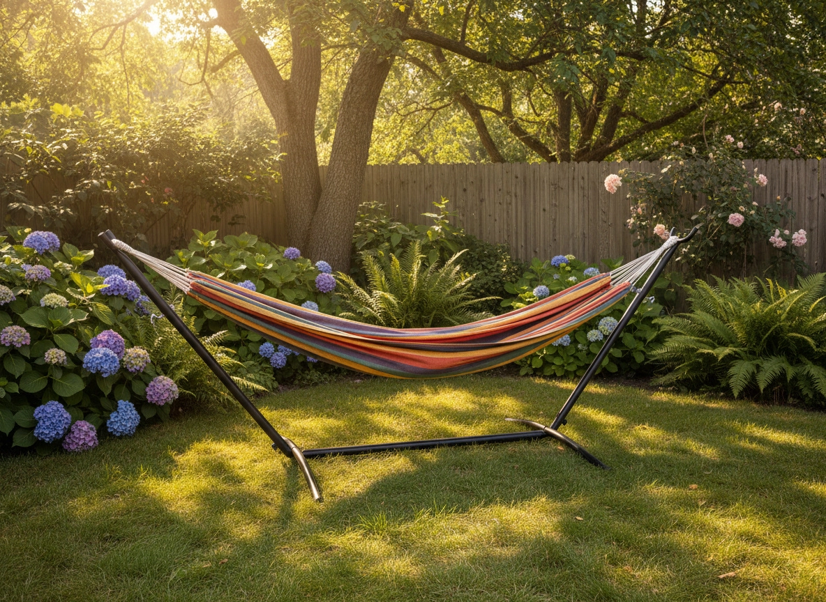 Samostojeći okvir omogućuje vješanje viseće mreže u vrtu, na terasi ili na travnjaku – bez bušenja i traženja prikladnih točaka za učvršćenje.