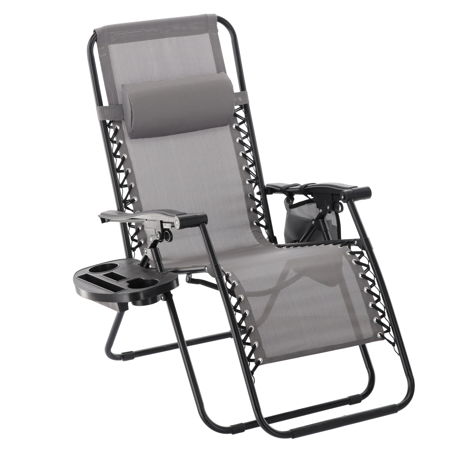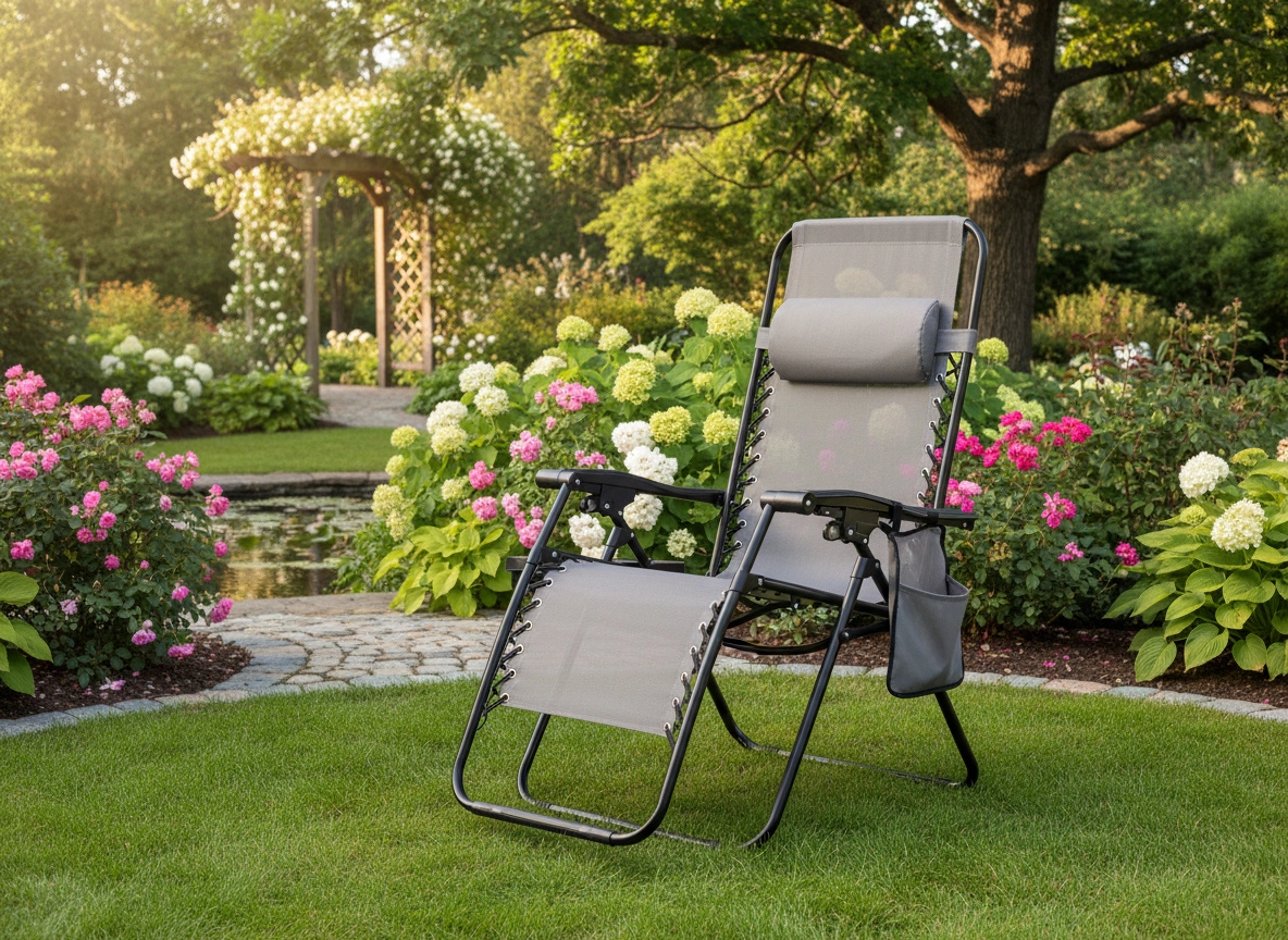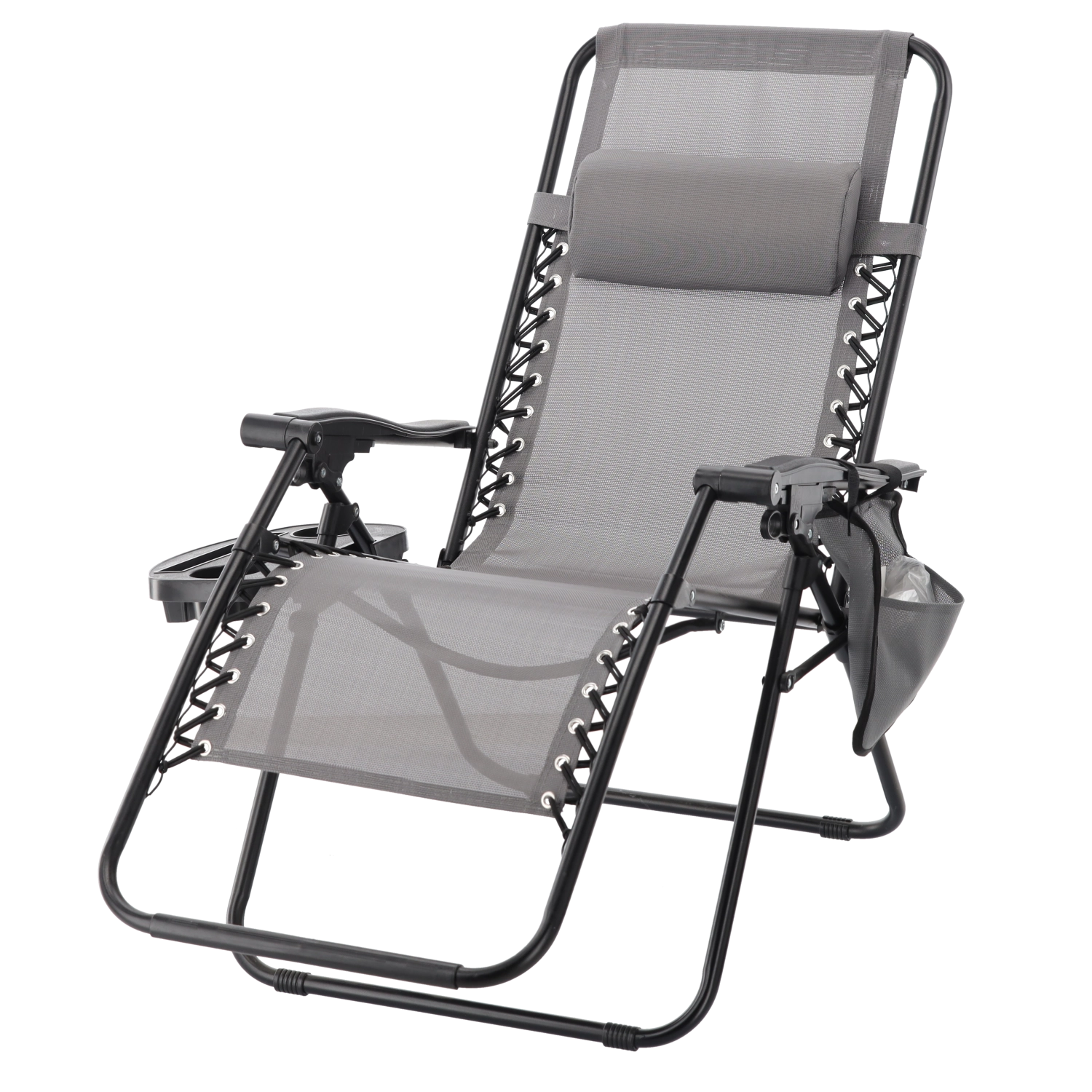 Uživajte u opuštanju na terasi ili u vrtu s ovom sivom ležaljkom s funkcijom gotovo nulte gravitacije. Nudi podesiv položaj ležanja, odvojivi jastuk za glavu, praktičan bočni stolić s držačem za piće i džep za potrepštine. Prozračna mrežica Textilene osigurava udobnost i po vrućini, a čvrst metalni okvir daje stabilnost i izdržljivost za svakodnevnu vanjsku uporabu.