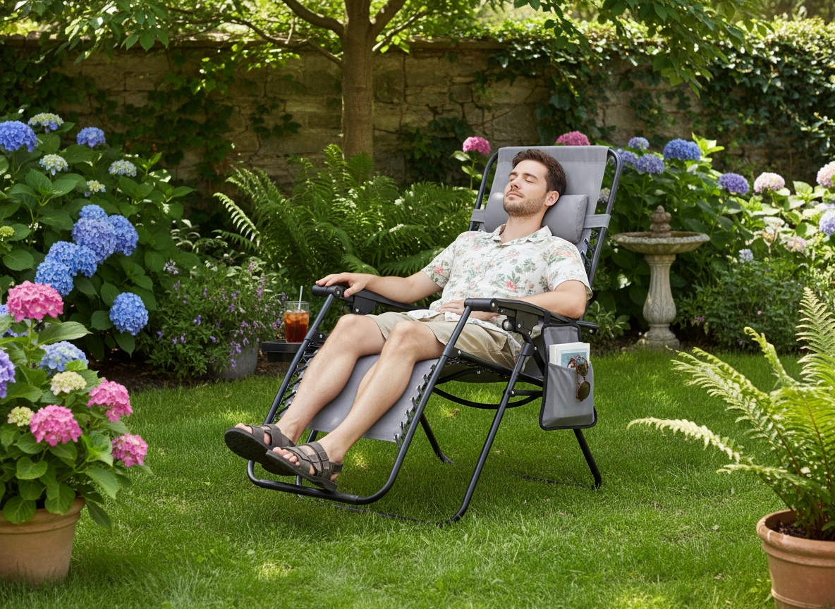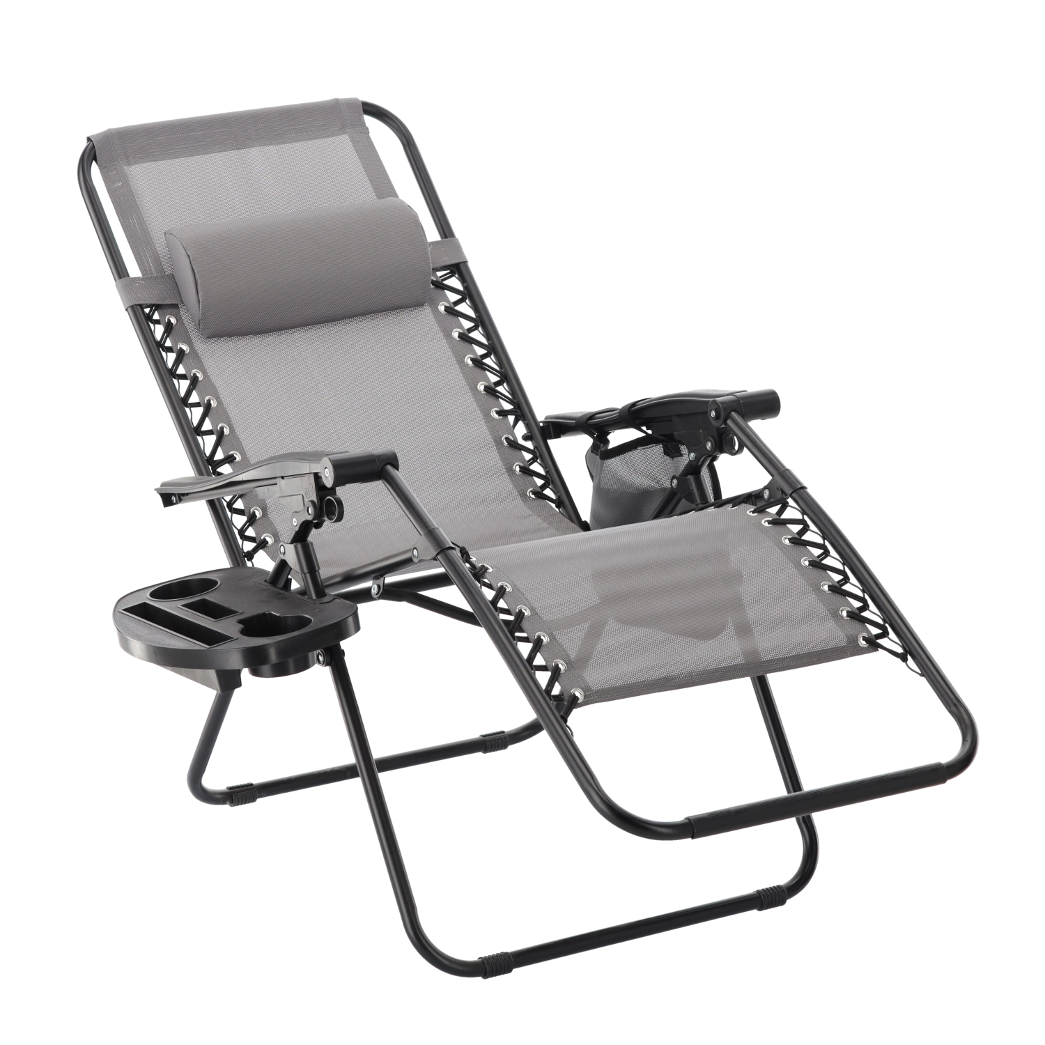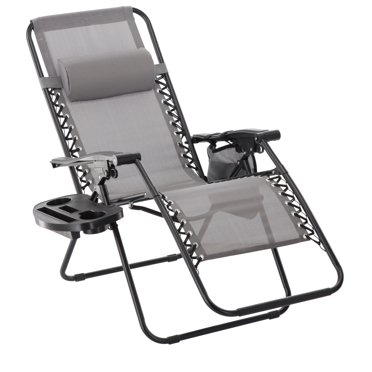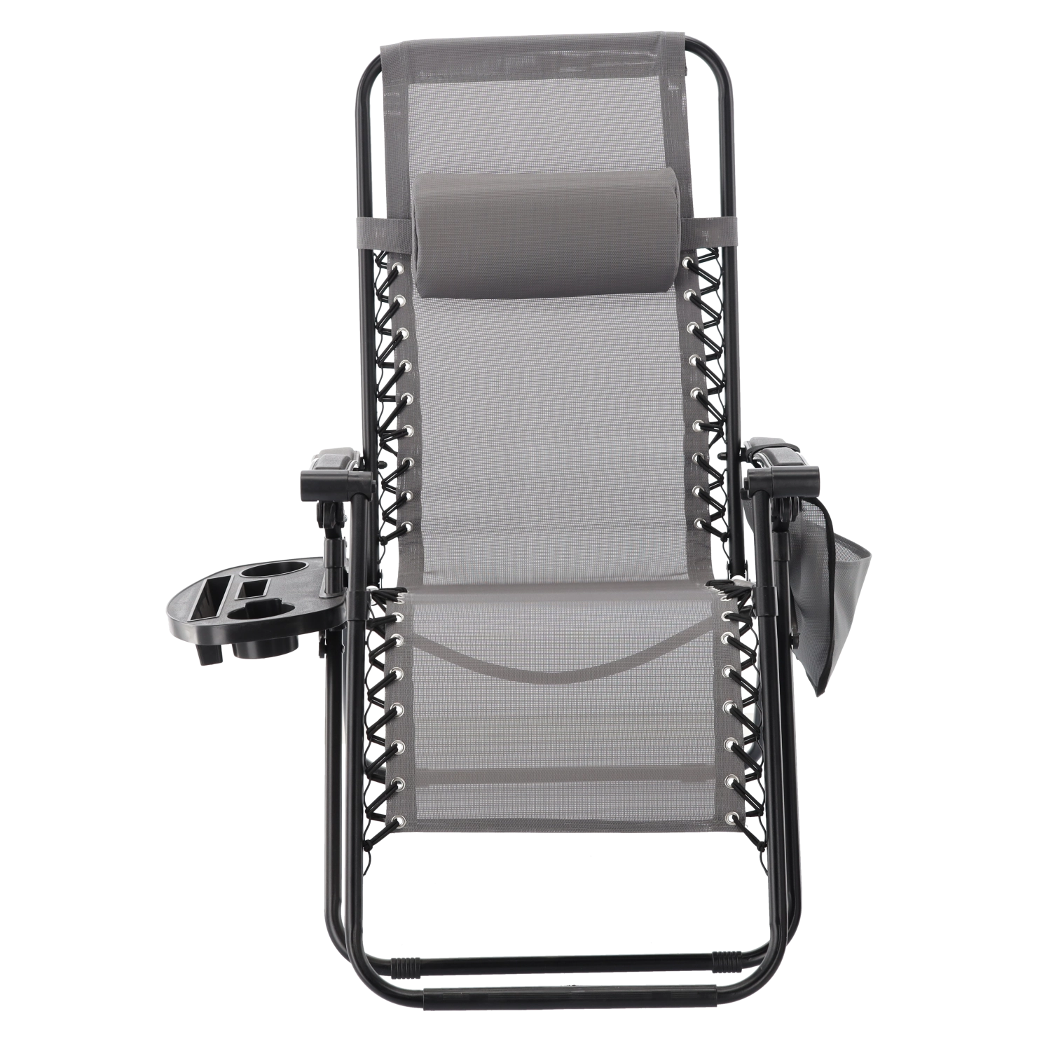 Uživajte u opuštanju na terasi ili u vrtu s ovom sivom ležaljkom s funkcijom gotovo nulte gravitacije. Nudi podesiv položaj ležanja, odvojivi jastuk za glavu, praktičan bočni stolić s držačem za piće i džep za potrepštine. Prozračna mrežica Textilene osigurava udobnost i po vrućini, a čvrst metalni okvir daje stabilnost i izdržljivost za svakodnevnu vanjsku uporabu.