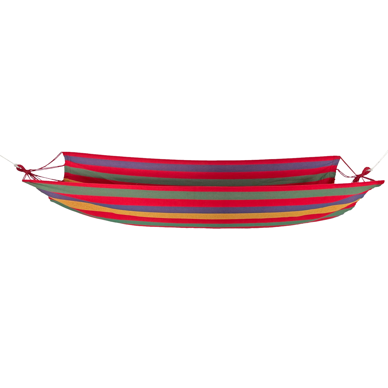 Stilovna viseća mreža u energičnim crvenim prugama unijet će u vaš eksterijer atmosferu odmora. Zahvaljujući kombinaciji poliestera i pamuka tkanina je čvrsta, prozračna i ugodna na dodir, pa je idealna za duže izležavanje na suncu ili u hladu drveća.